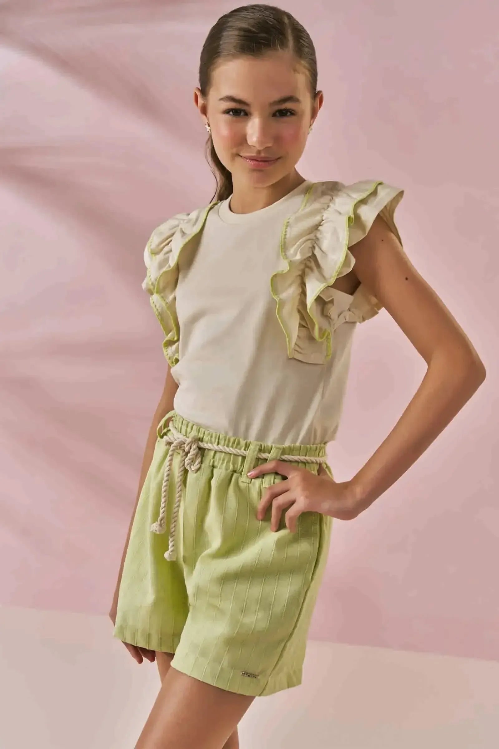 A blusa em meia malha, é uma peça delicada e cheia de charme, perfeita para as pequenas que amam um look cheio de estilo e personalidade! disponível em duas cores super clean e estilosas - off white e bege - ela oferece um toque super macio e confortável, ideal para o dia a dia e para manter a pele fresquinha.