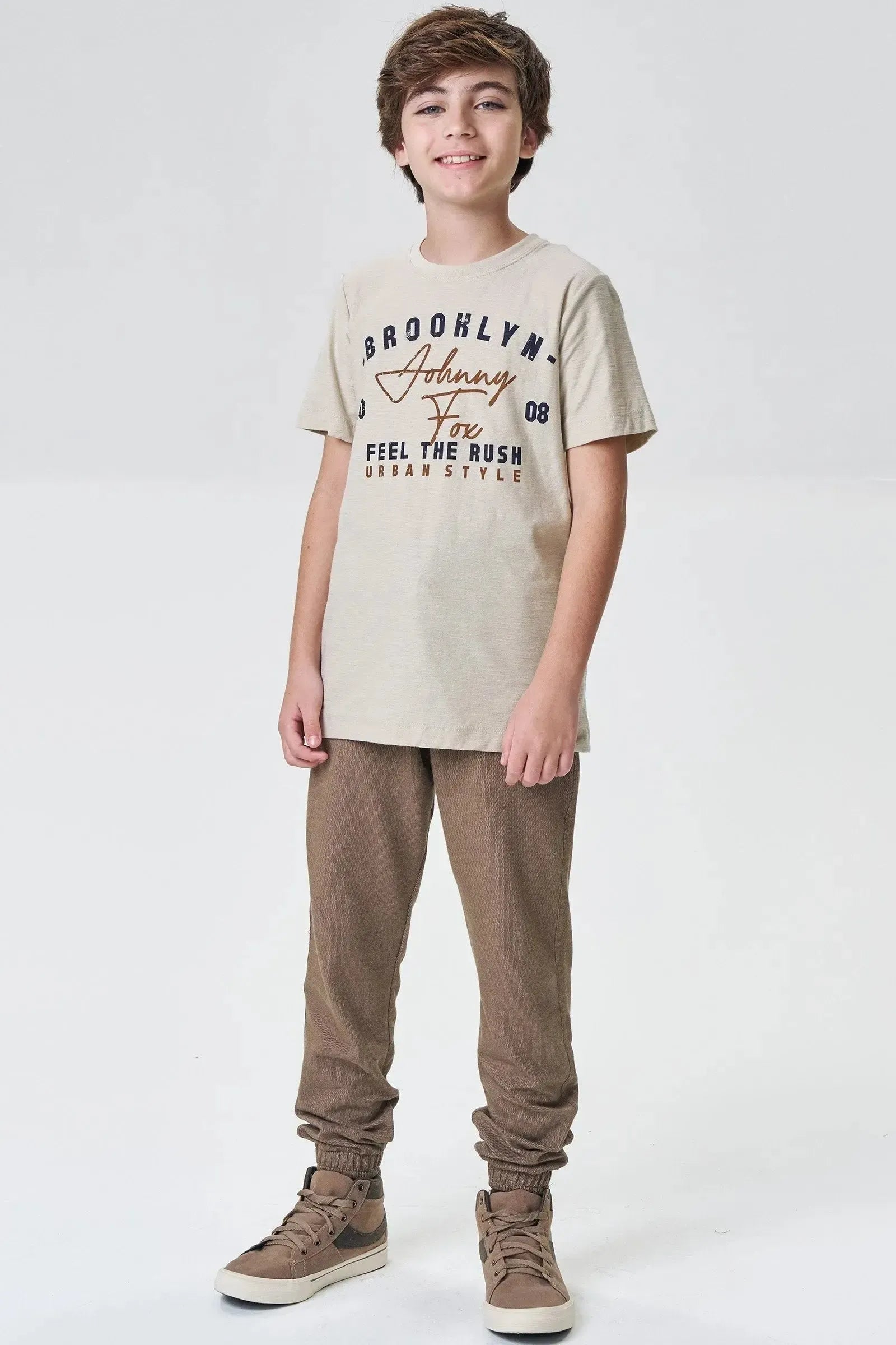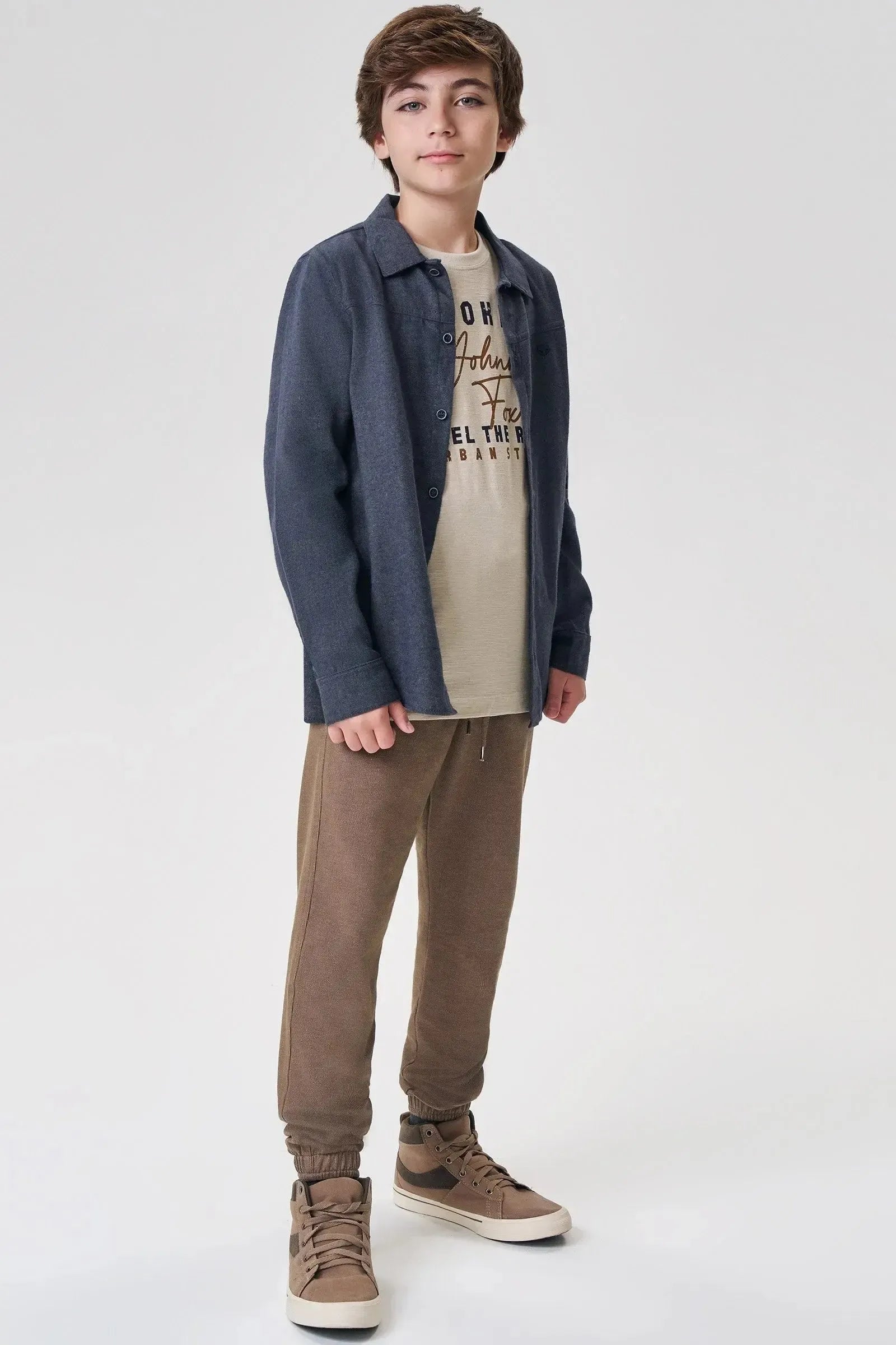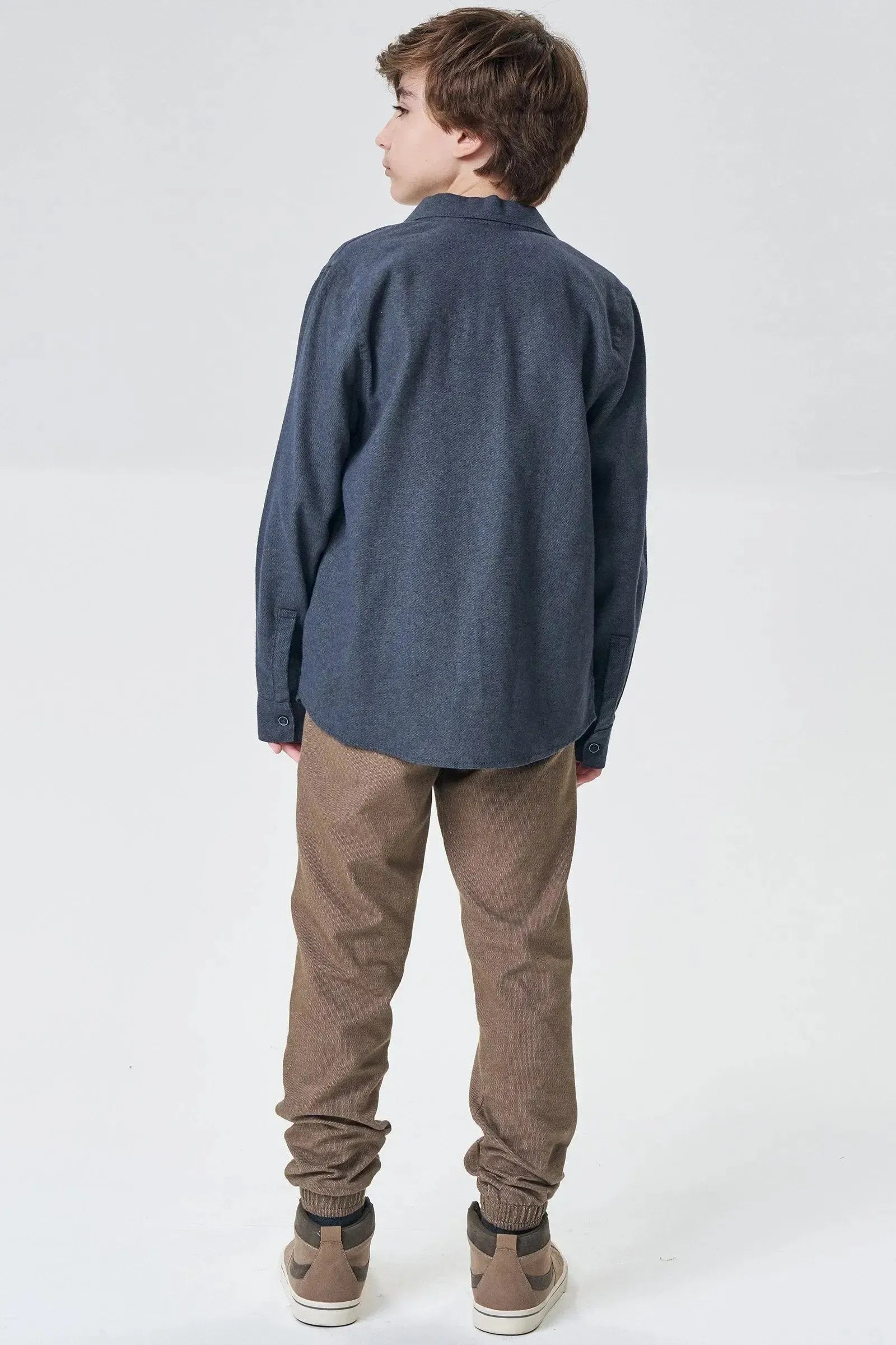 A calça jogger em malha denim com elastano, é a escolha perfeita para os meninos que amam um look cheio de conforto, sem abrir mão do estilo no dia à dia! Disponível em duas cores super estilosas - caqui e marinho - ela é uma peça essencial, perfeita para montar diversos looks e deixar o inverno dos pequenos ainda mais estiloso!