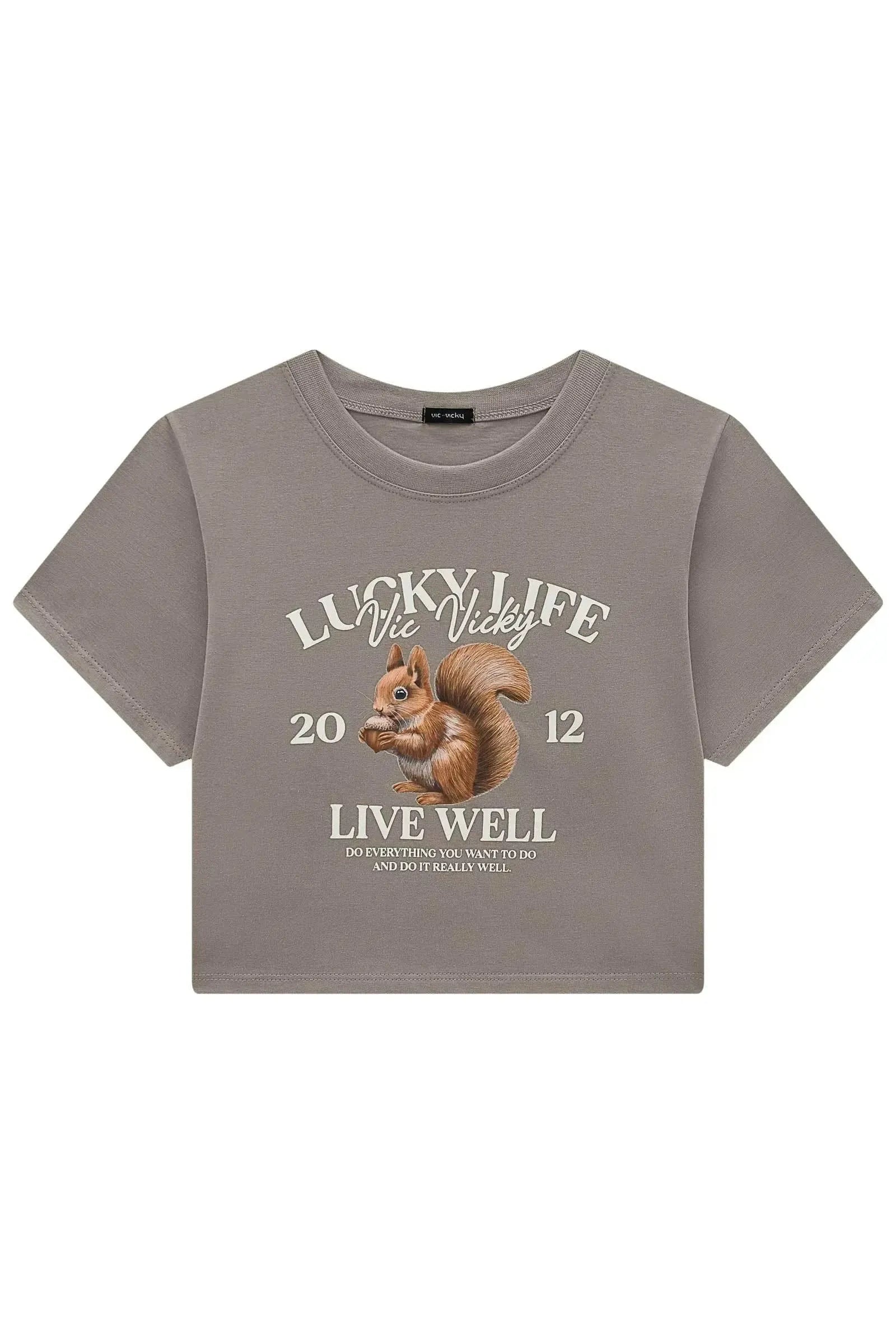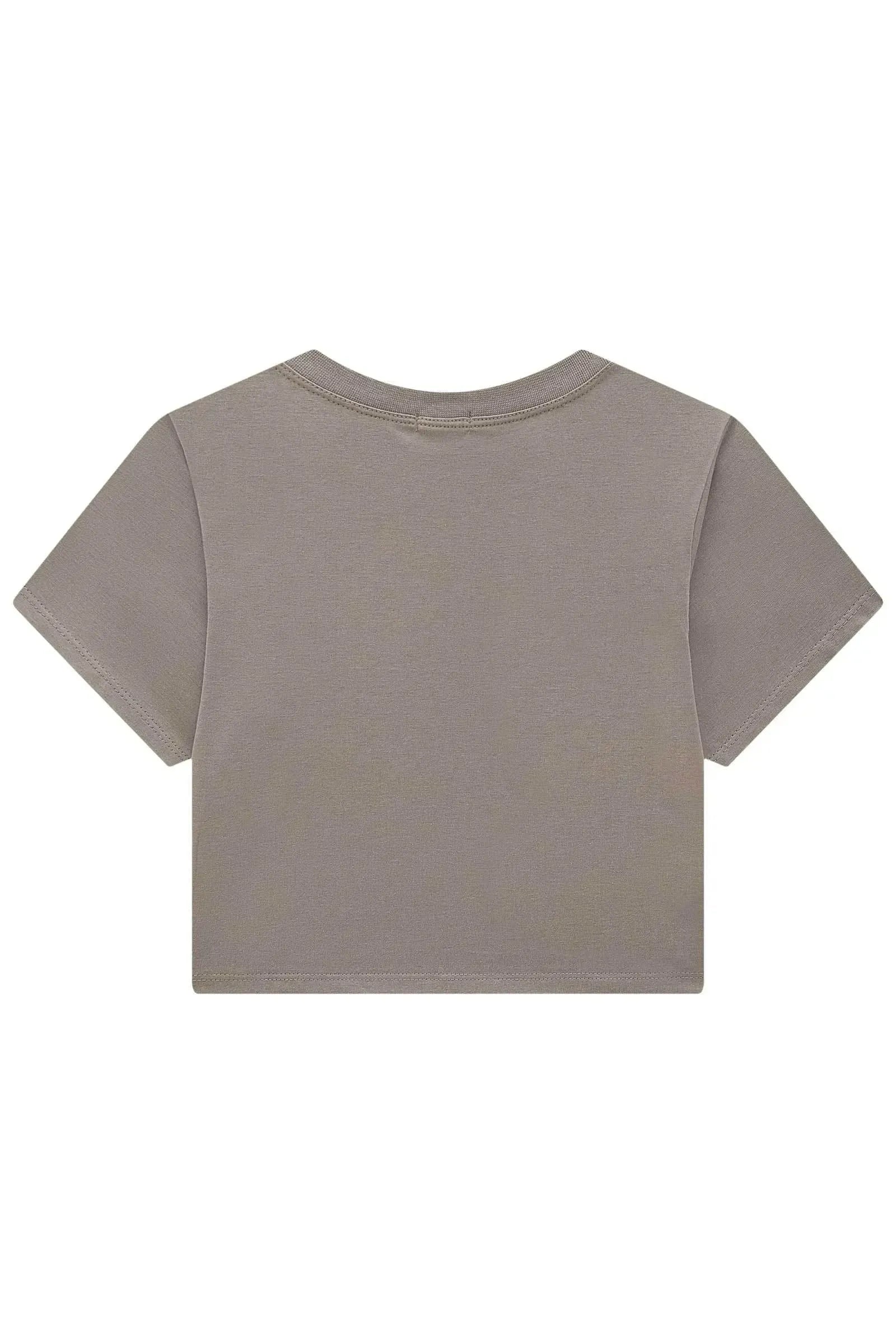 A camiseta boxy over em meia malha, é a peça perfeita para as meninas que amam um look cheio de estilo! Disponível em uma cor super estilosa - caqui - esta peça é perfeita para as meninas que adoram um estilo despojado e cheio de personalidade! A sublimação divertida e o DTF, adicionam um charme especial à peça.