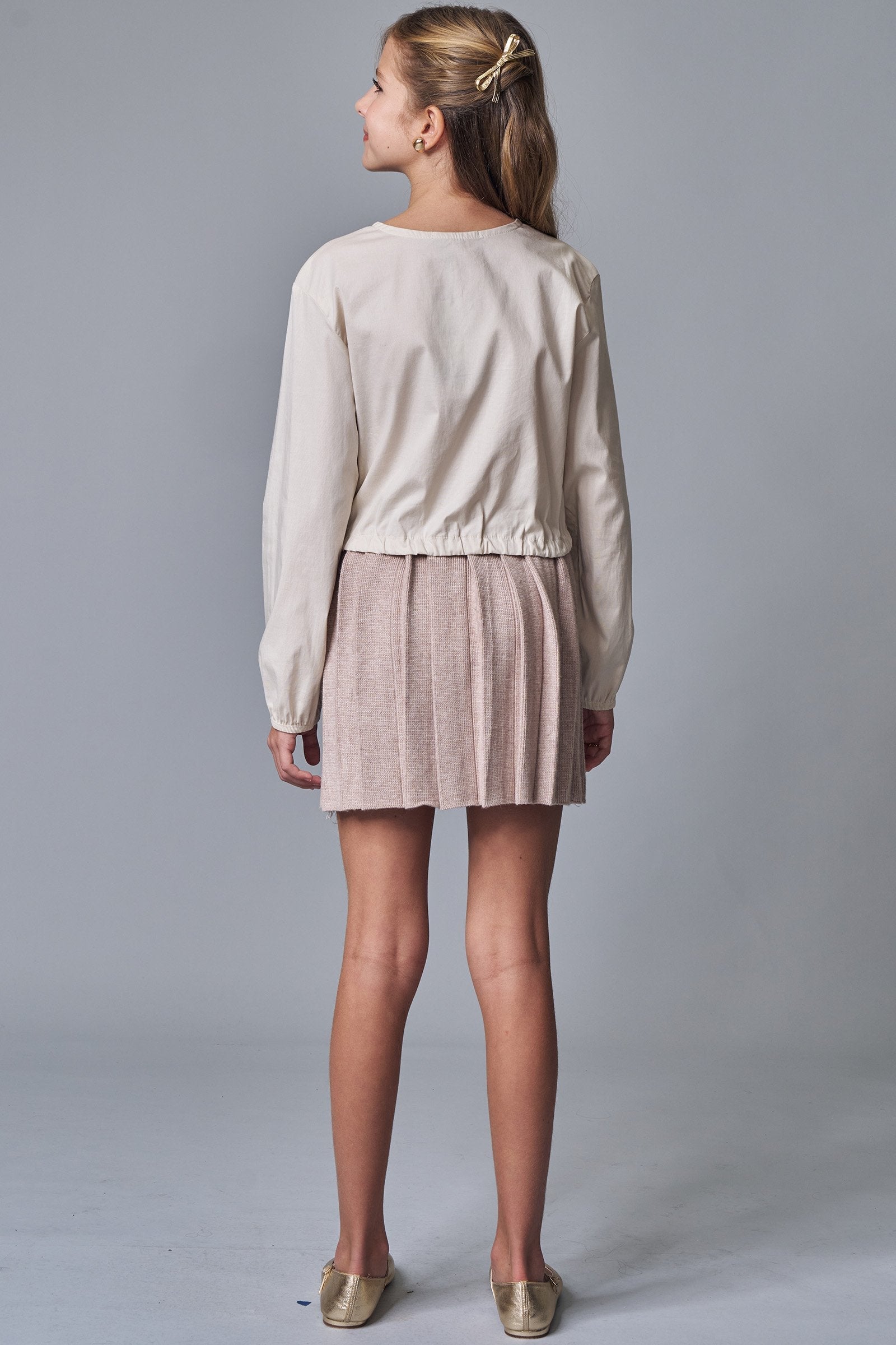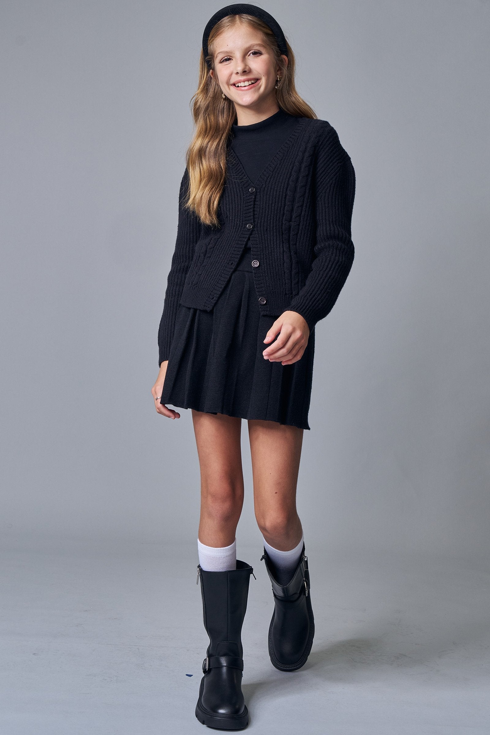 A saia de pregas em tricô prime, é a escolha perfeita para as meninas que amam um look cheio de conforto, sem abrir mão do estilo no dia à dia! Disponível em duas cores super estilosas - bege e preto - ela é uma peça essencial, perfeita para montar diversos looks e deixar o inverno das pequenas ainda mais estiloso!