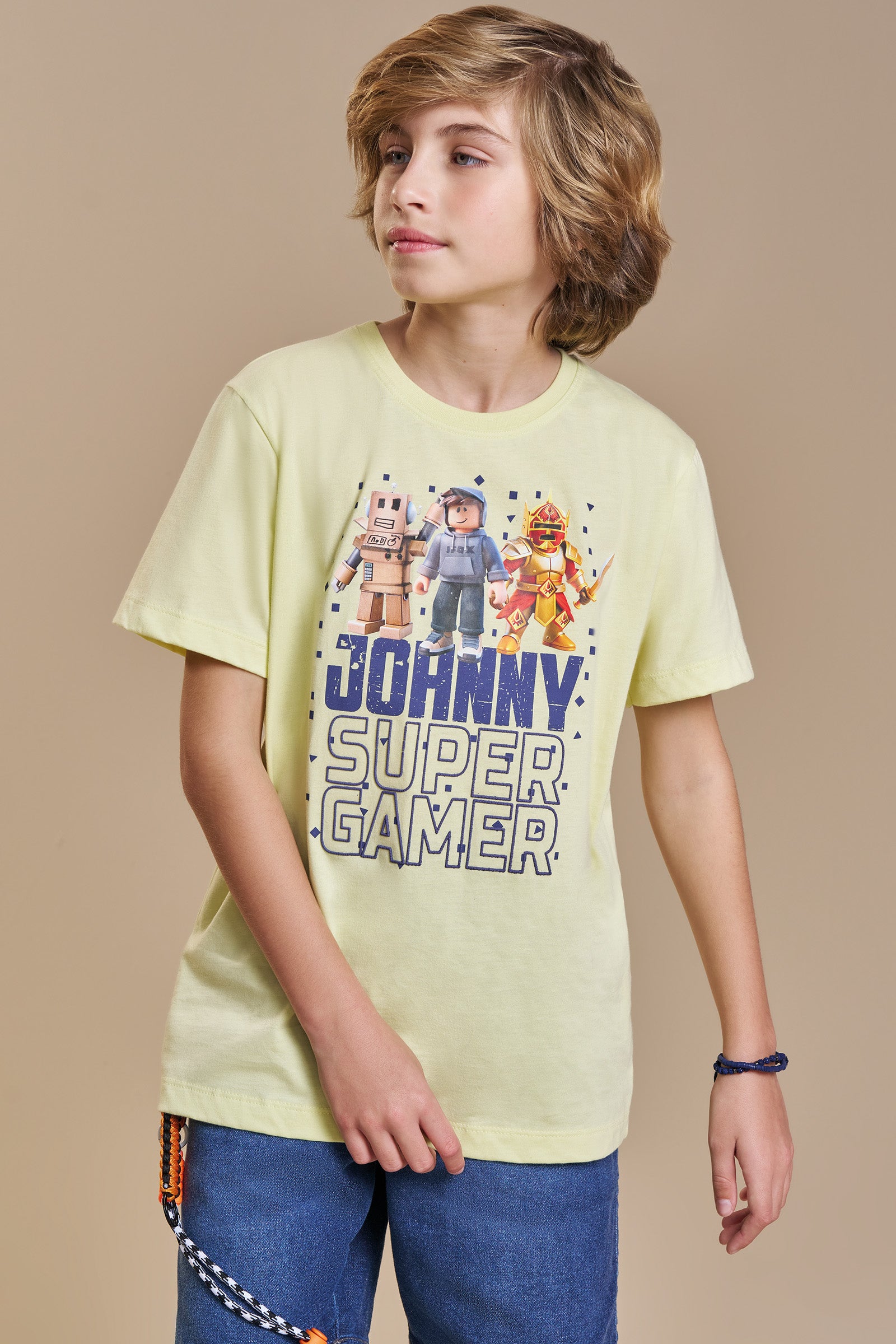 Camiseta em Meia Malha A camiseta infantil masculina Johnny Fox é feita para os meninos que vivem o universo dos games e adoram expressar sua personalidade em cada look. Confeccionada em meia malha macia e confortável, oferece toque suave e excelente respirabilidade, perfeita para o dia a dia, brincadeiras ou passeios. O destaque fica por conta da estampa exclusiva ¿Johnny Super Gamer¿, com personagens inspirados no mundo digital e cores vibrantes que deixam o visual cheio de atitude! Com modelagem moderna e caimento impecável, é uma peça essencial para meninos estilosos que gostam de conforto e autenticidade. Combine com bermudas jeans, moletom ou sarja e monte produções descontraídas com o DNA urbano da Johnny Fox Special Games.