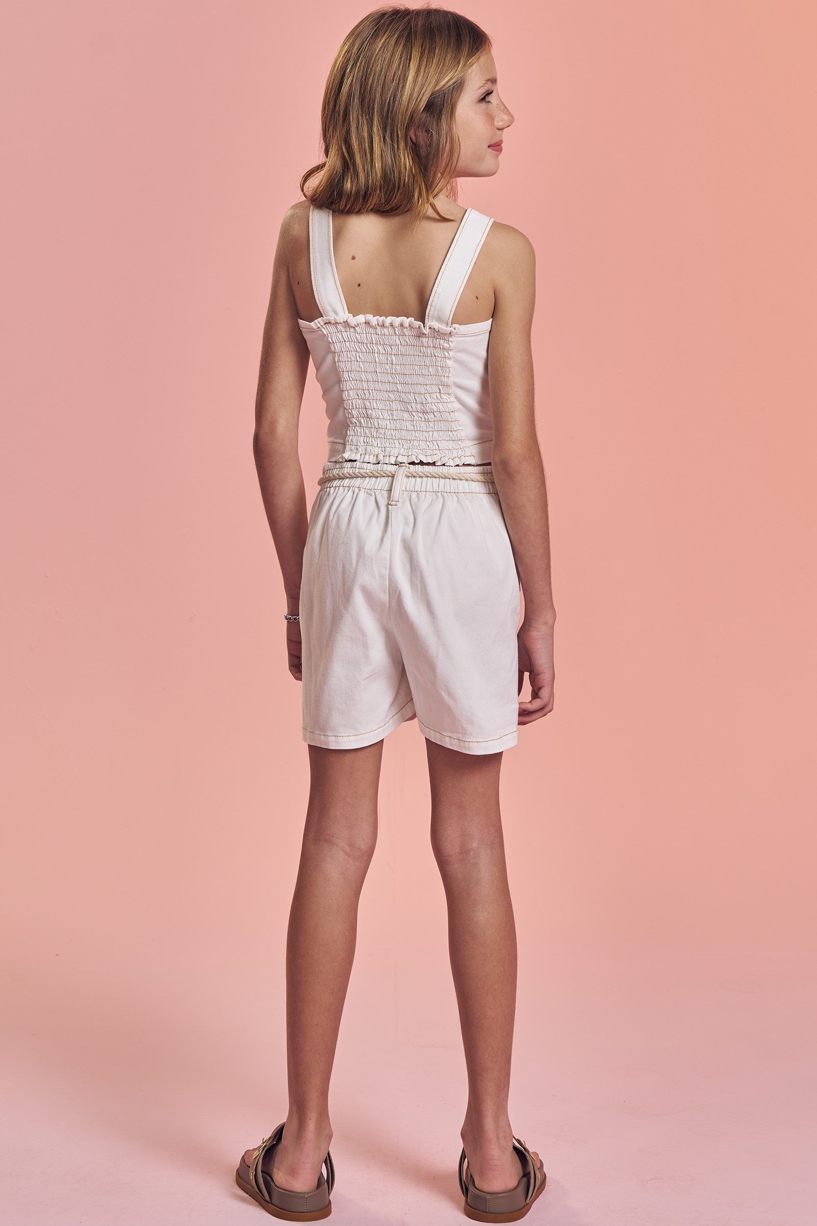 Conjunto Infantil Feminino Lilimoon - Top Cropped e Shorts em Sarja com Elastano