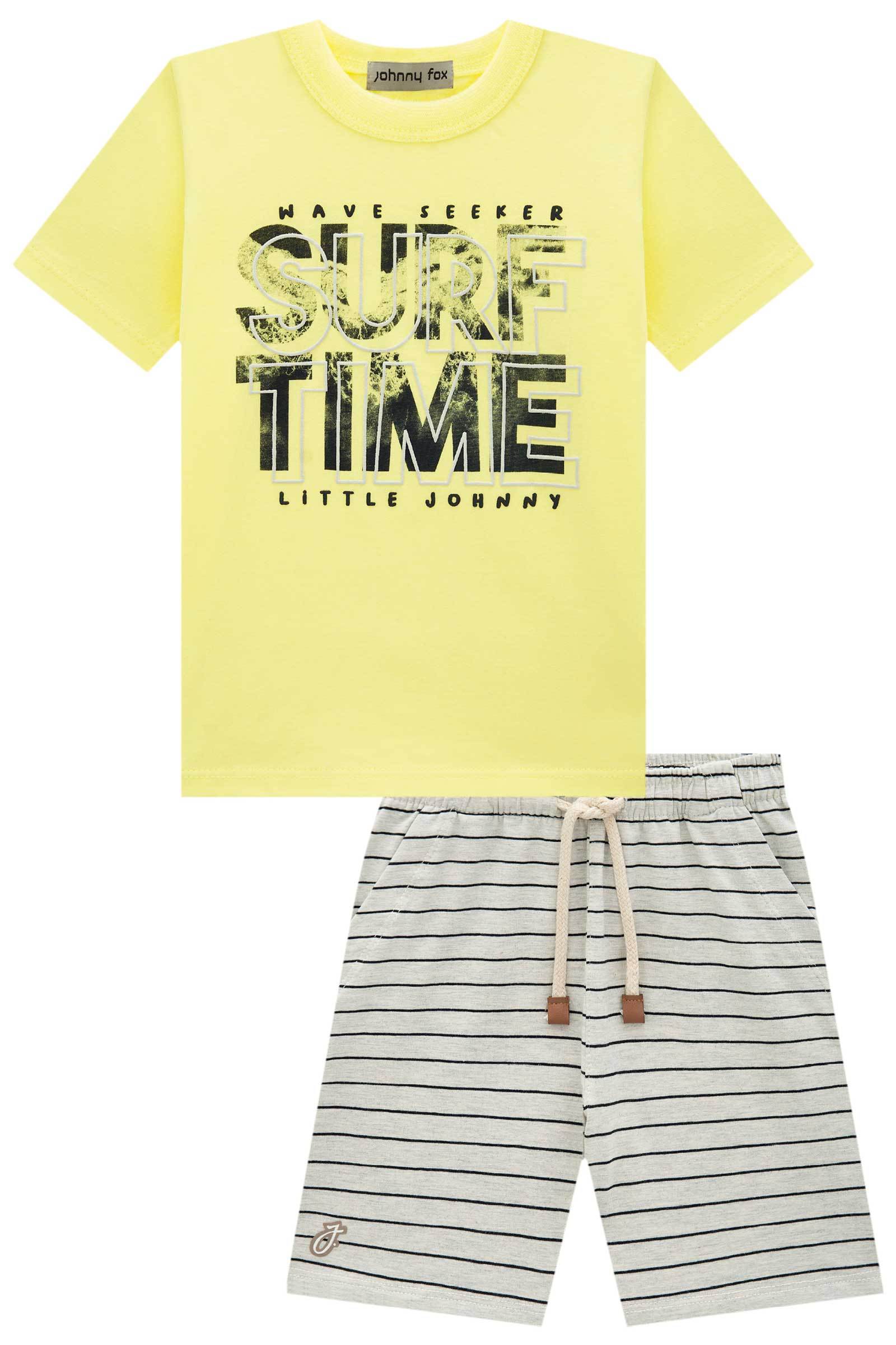 Camiseta em Meia Malha e Bermuda em Cotton Listrado Fio Tinto 84667 Johnny Fox Teen Menino