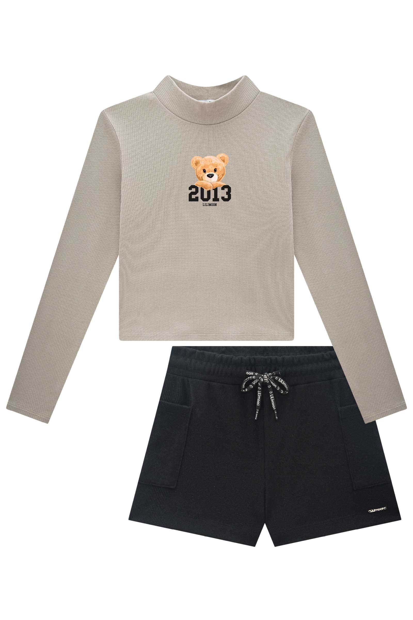 Conjunto de Blusa Boxy em Canelado Liz e Shorts em Canelado Soft 90778 Lilimoon Teen Menina