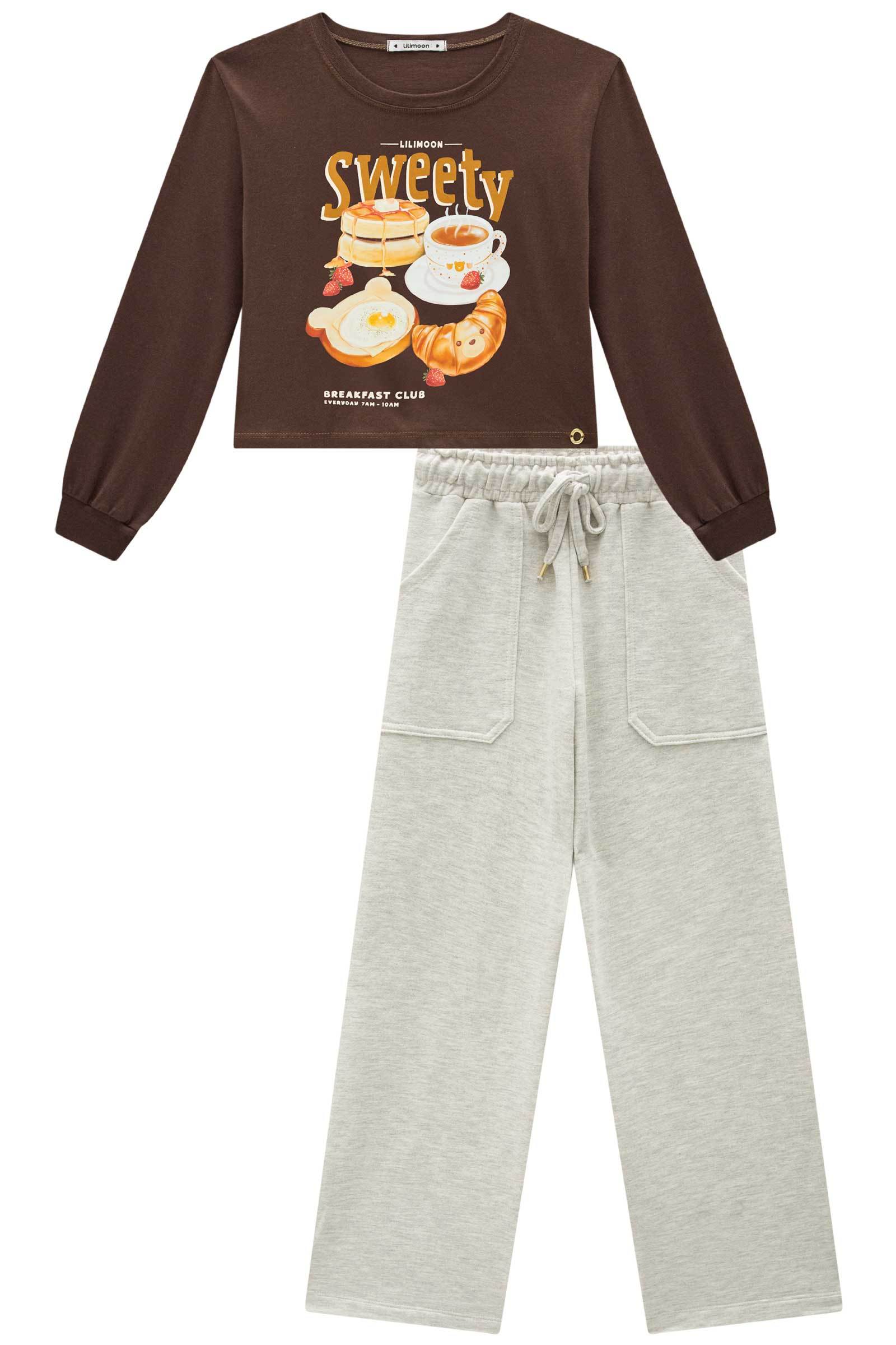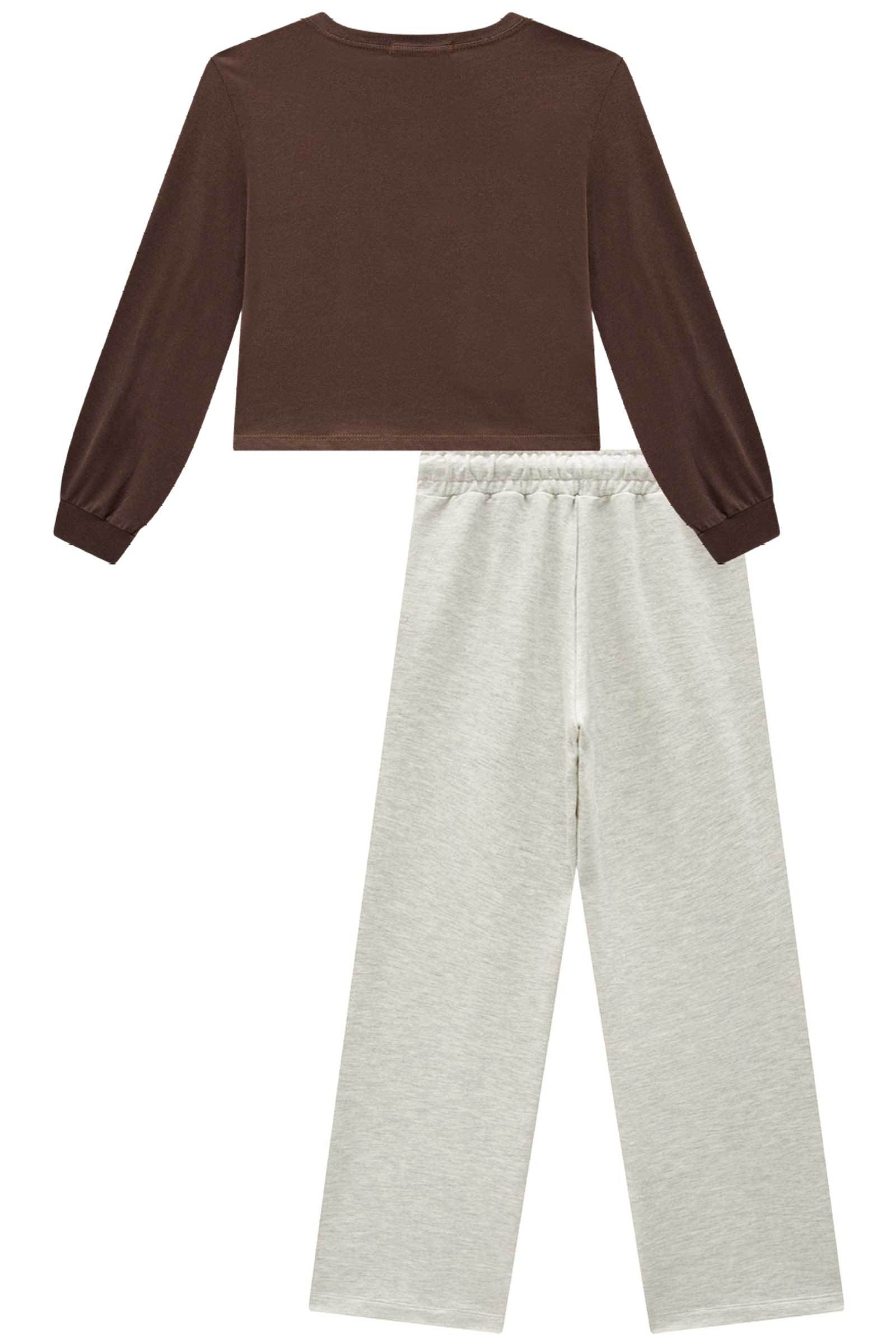 O conjunto de blusa boxy over em meia malha e calça wide leg em moletom sem pelúcia, é a escolha perfeita para as meninas que amam um look cheio de conforto, sem abrir mão do estilo no dia à dia! Disponível em uma cor super estilosa - marrom - ela é uma peça essencial, perfeita para montar diversos looks e deixar o inverno das pequenas ainda mais estiloso! A estampa divertida, adiciona um charme especial à peça.
