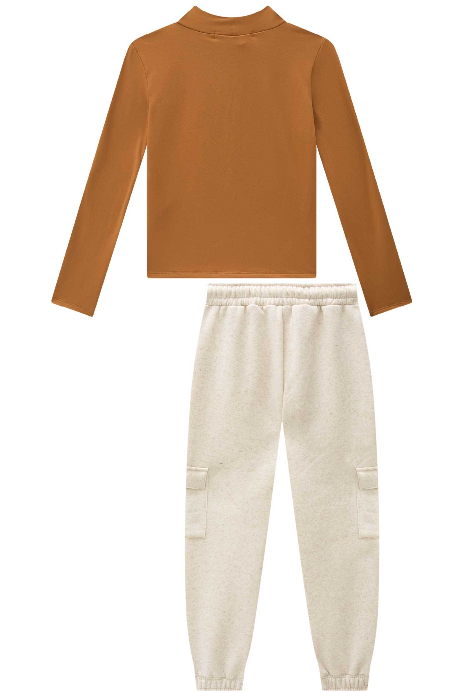 O conjunto de blusa em termoskin peluciado e calça jogger em moletom com pelúcia, é a escolha perfeita para as meninas que amam um look cheio de conforto, sem abrir mão do estilo no dia à dia! Disponível em uma cor super estilosa - bege - ela é uma peça essencial, perfeita para montar diversos looks e deixar o inverno das pequenas ainda mais estiloso!