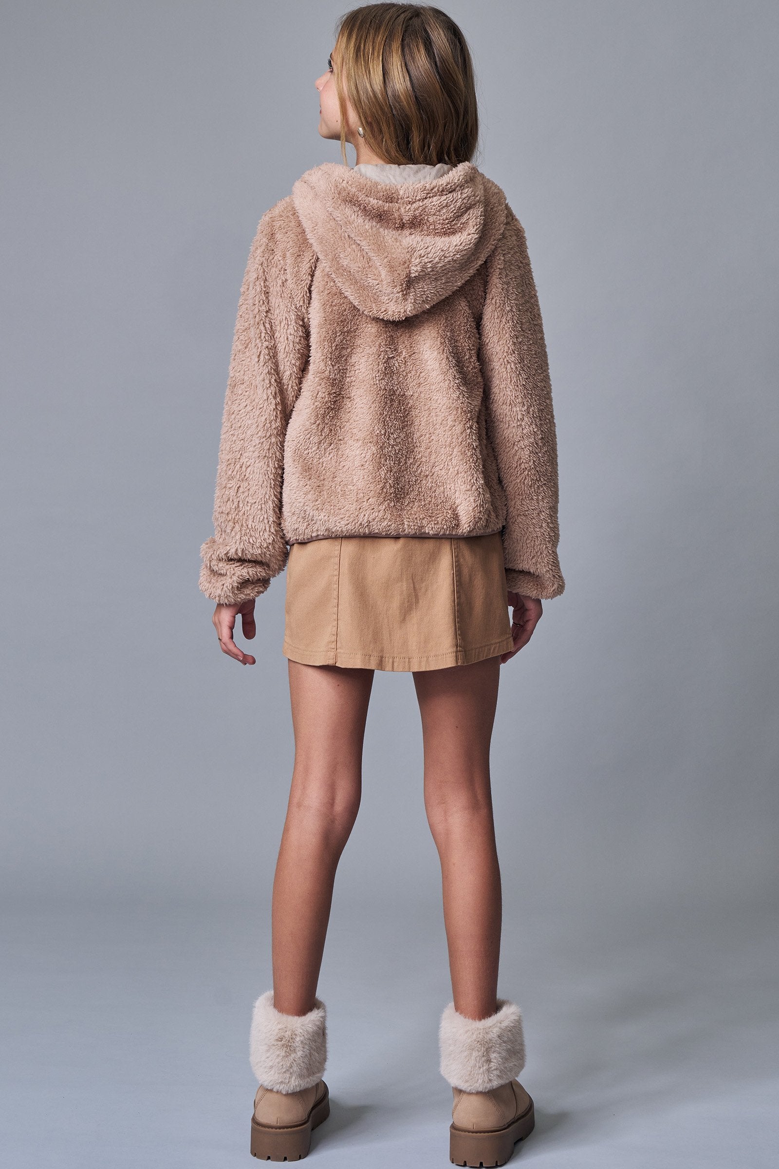 A jaqueta com capuz em pelo carneirinho, é a escolha perfeita para as meninas que amam um look cheio de conforto, sem abrir mão do estilo no dia à dia! Disponível em uma cor super estilosa - bege - ela é uma peça essencial, perfeita para montar diversos looks e deixar o inverno das pequenas ainda mais estiloso!