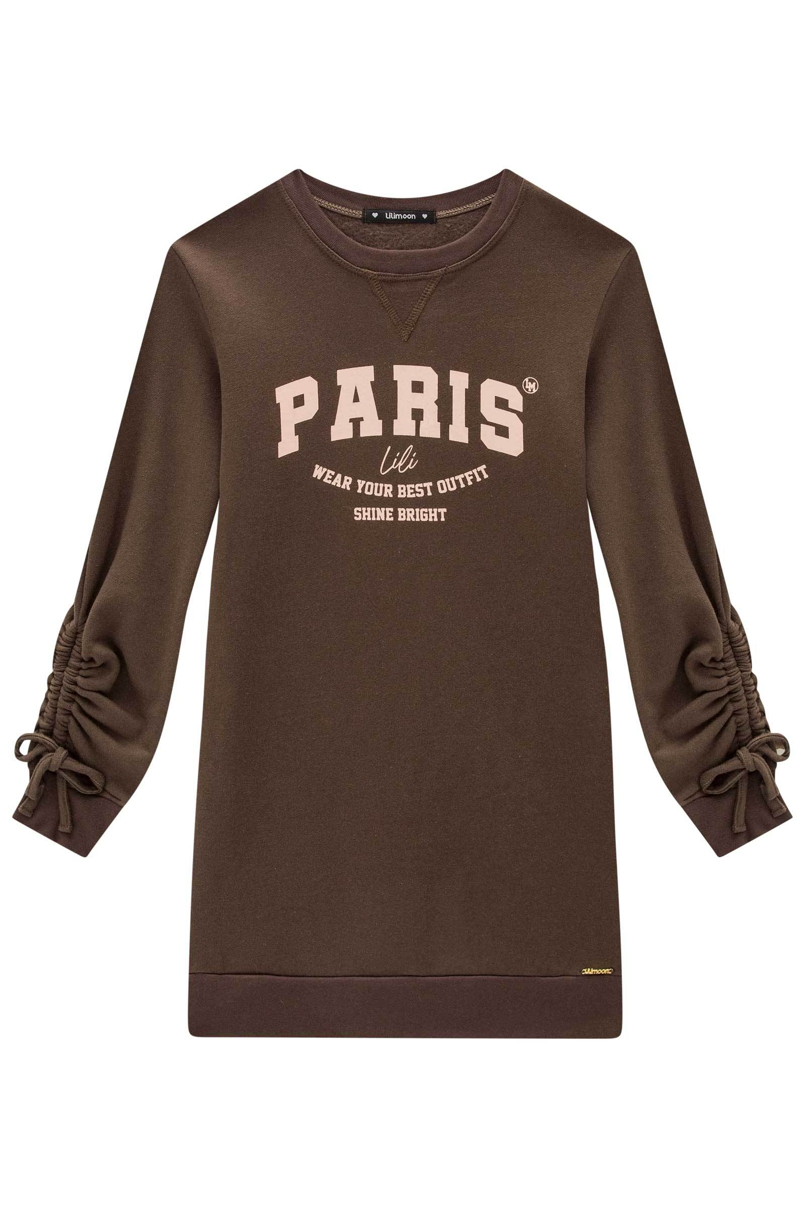 O vestido em moletom com pelúcia, é a escolha perfeita para as meninas que amam um look cheio de conforto, sem abrir mão do estilo no dia à dia! Disponível em uma cor super estilosa - marrom - ela é uma peça essencial, perfeita para montar diversos looks e deixar o inverno das pequenas ainda mais estiloso! A estampa divertida, adiciona um charme especial à peça.