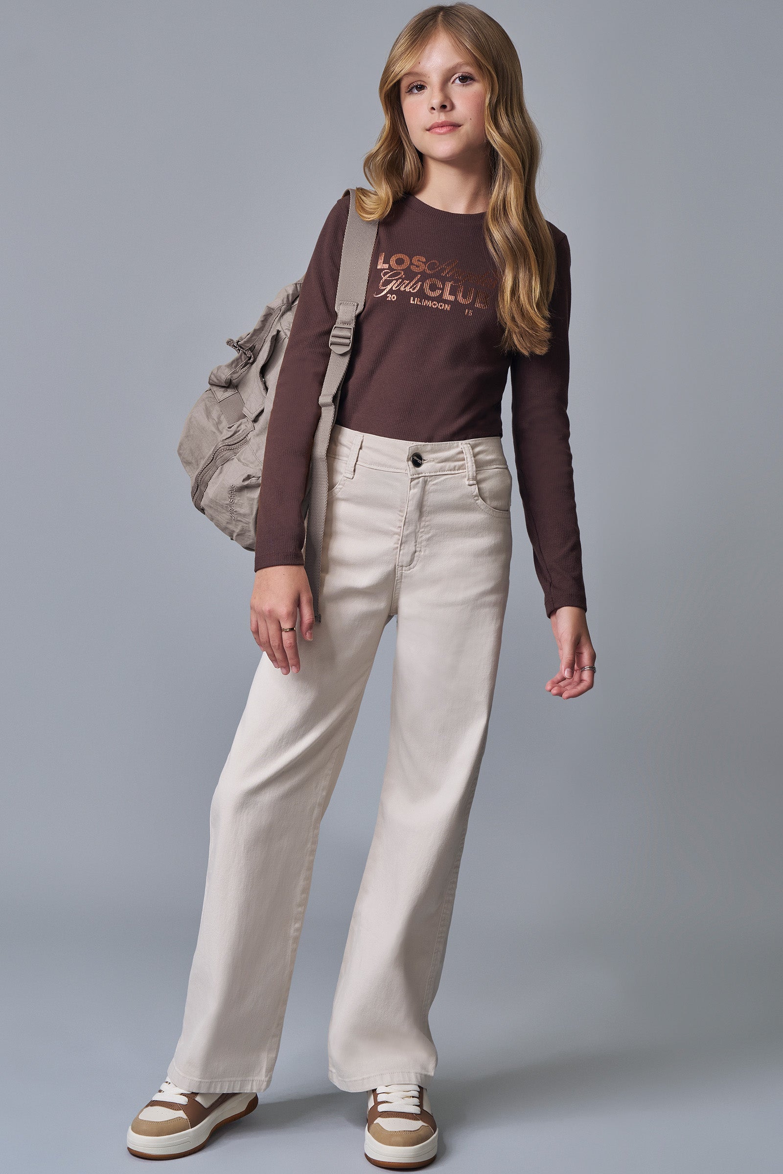 Conjunto de Blusa em Canelado Liz e Calça Wide Leg em Sarja com Elastano 92207 Lilimoon Teen Menina