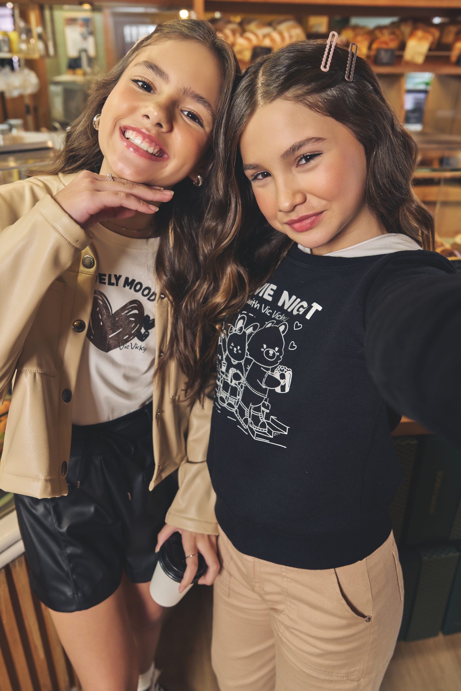 O blusão em moletom com pelúcia, é a escolha perfeita para as meninas que amam um look cheio de conforto, sem abrir mão do estilo no dia à dia! Disponível em uma cor super estilosa - preto - ela é uma peça essencial, perfeita para montar diversos looks e deixar o inverno das pequenas ainda mais estiloso! A estampa divertida, adiciona um charme especial à peça.
