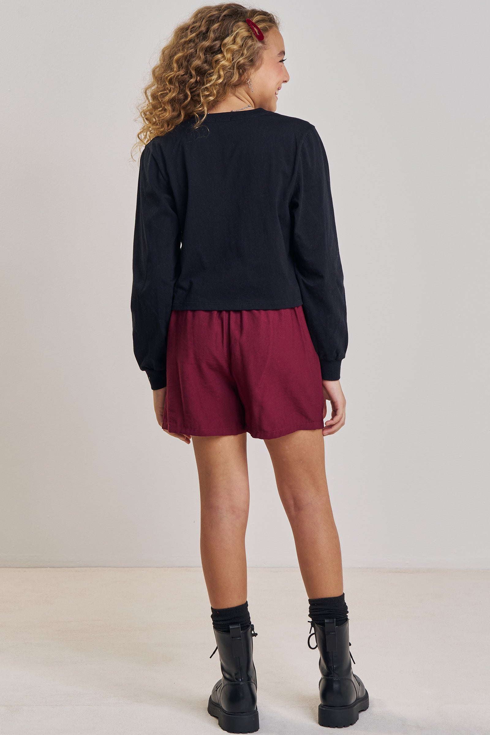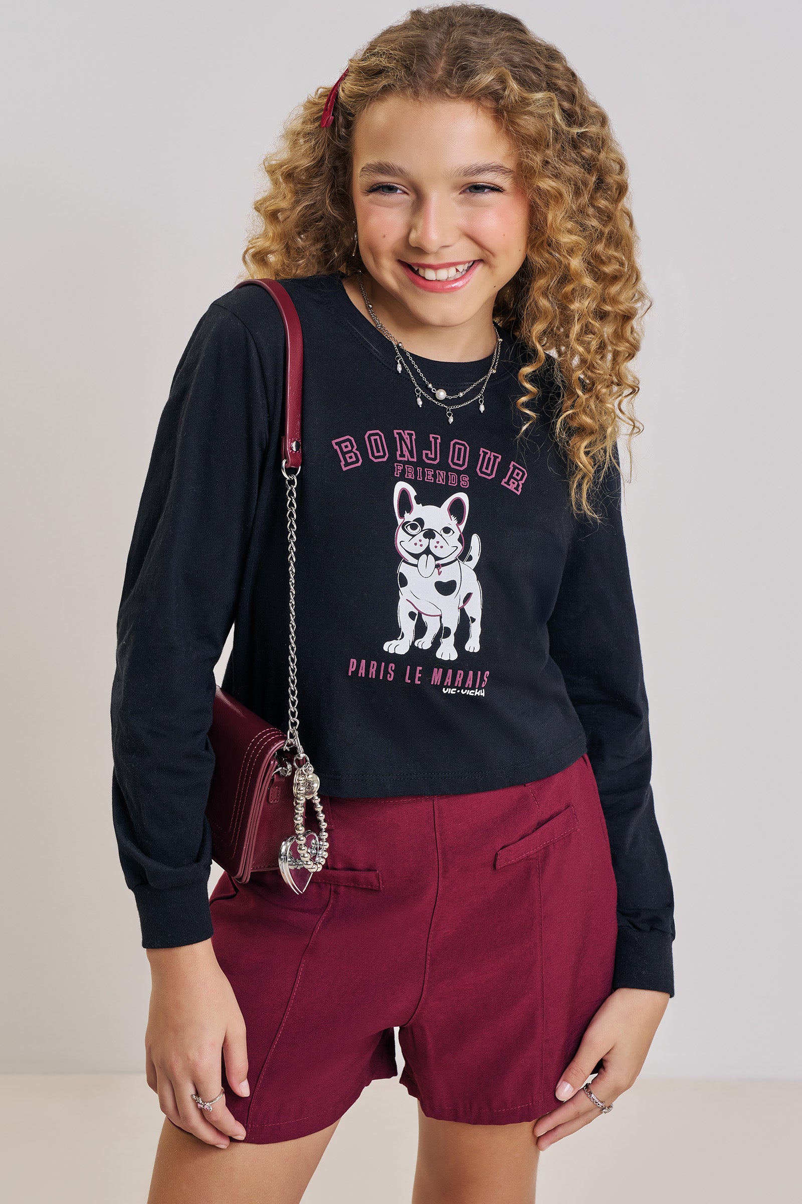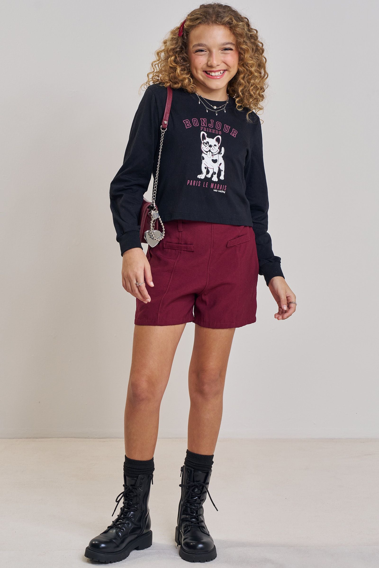 O conjunto de blusa boxy over em meia malha e shorts em alfaiataria marant, é a escolha perfeita para as meninas que amam um look cheio de conforto, sem abrir mão do estilo no dia à dia! Disponível em uma cor super estilosa - preto - ela é uma peça essencial, perfeita para montar diversos looks e deixar o inverno das pequenas ainda mais estiloso! A estampa divertida, adiciona um charme especial à peça.