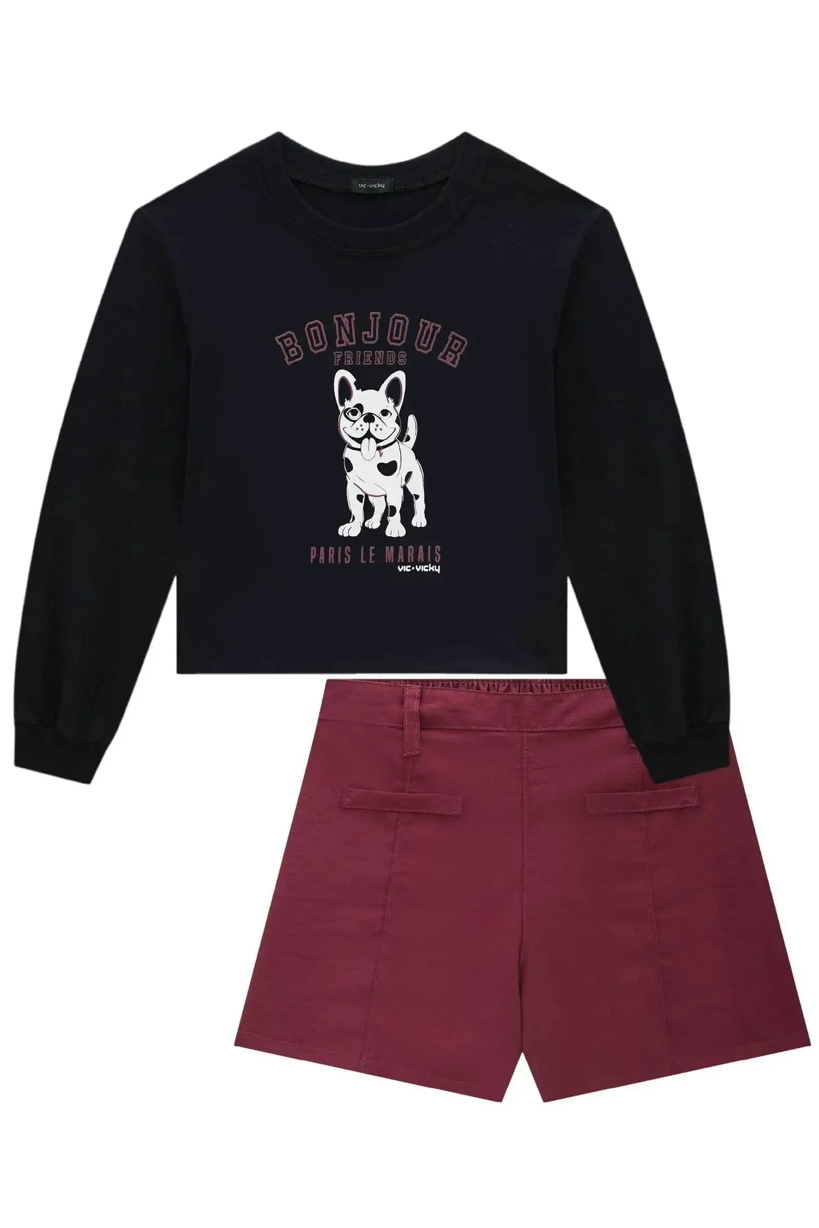 Conjunto de Blusa Boxy Over em Meia Malha e Shorts em Alfaiataria Marant 90703 Vic&Vicky Teen Menina