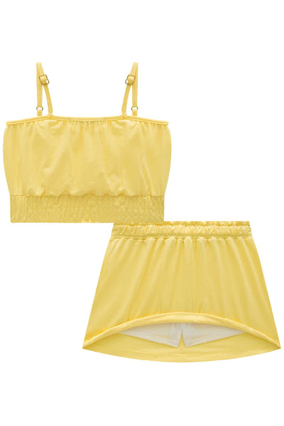 O conjunto de top boxy e saia em piquet com shorts embutido é perfeito para quem busca conforto, leveza e muito estilo. Disponível em duas cores super estilosas - vermelho e amarelo - este conjunto é a escolha ideal para os dias mais quentes.