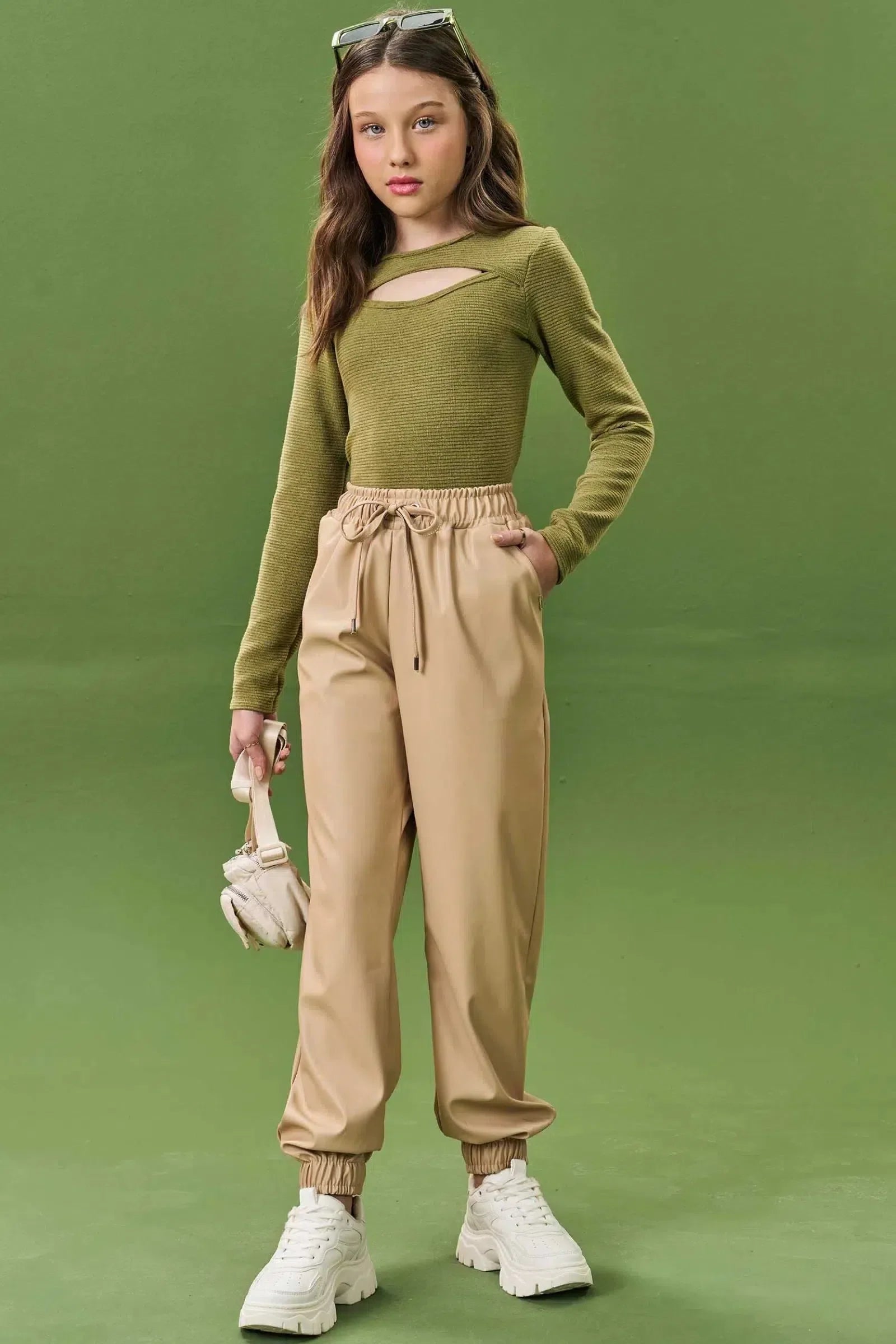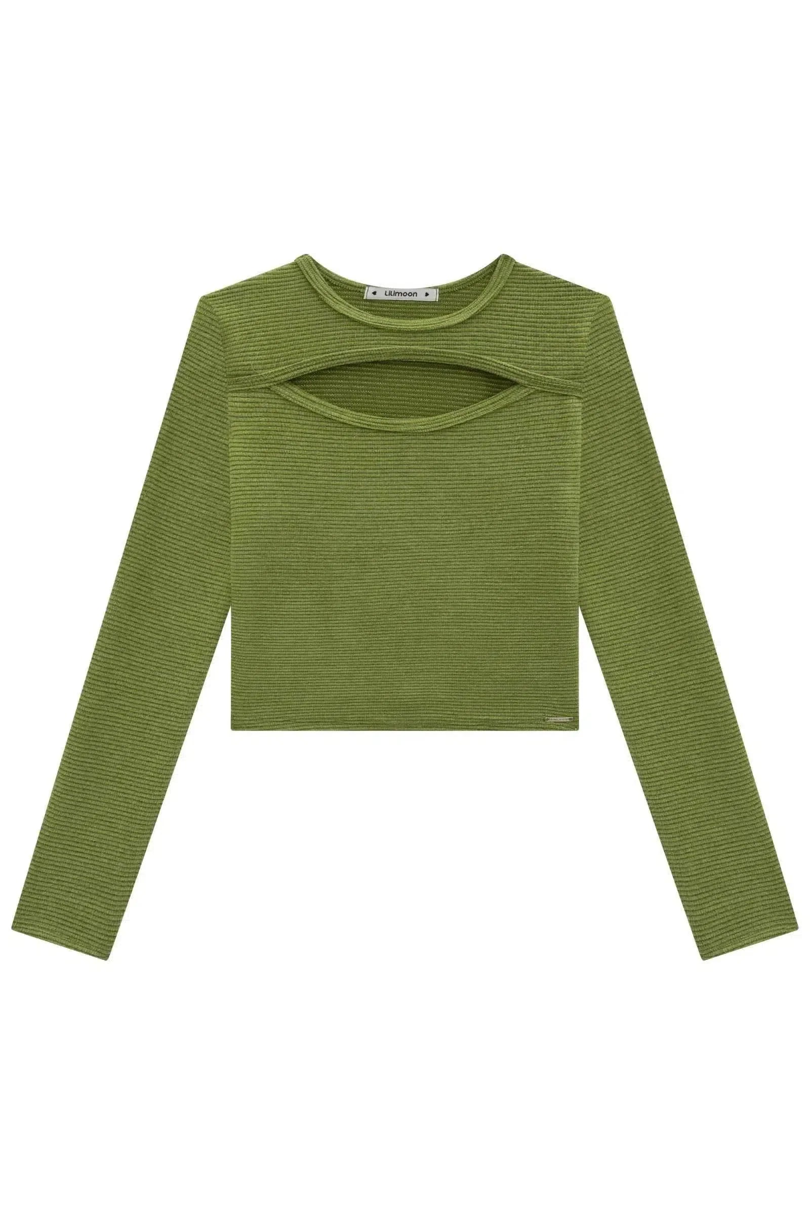 Blusa boxy Teen Feminina Em Malha Ribana Com Detalhe Cut Out Lilimoon