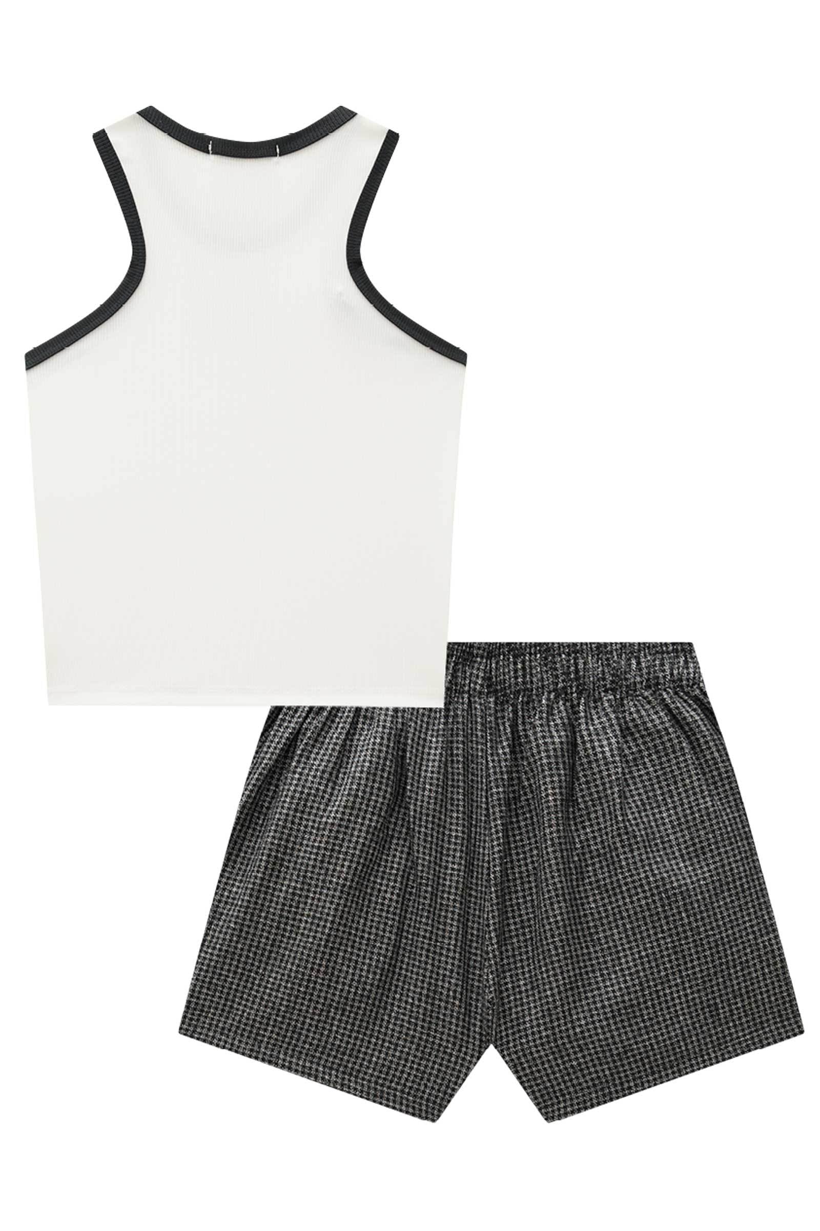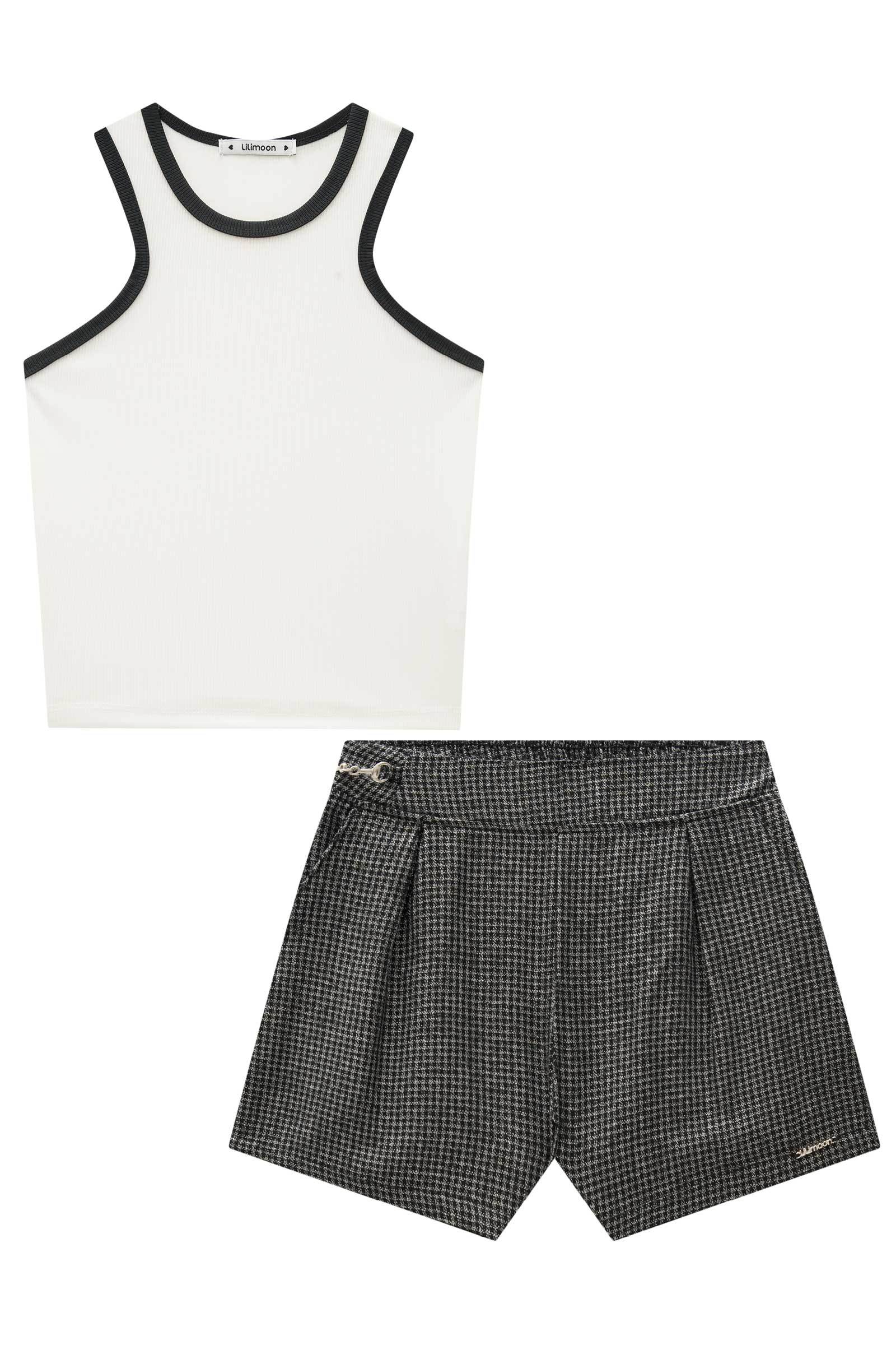 O conjunto de blusa boxy em canelado fancy e shorts em tweed light é perfeito para quem busca conforto, leveza e muito estilo. Disponível em uma cor super clean - off white - este conjunto é a escolha ideal para os dias mais quentes.