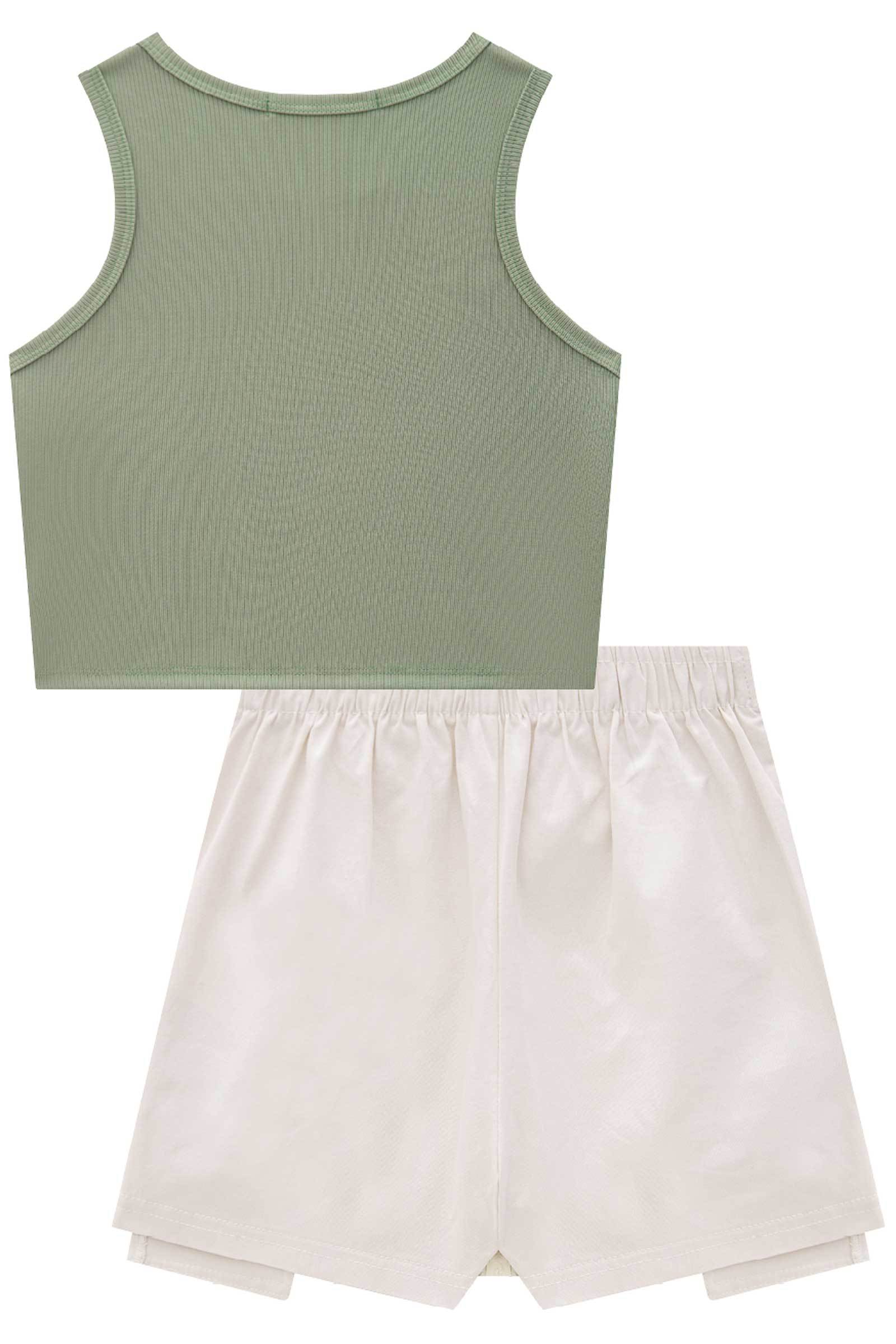 Conjunto de Blusa Cropped em Canelado Fancy e Short Saia em Sarja com Elastano 84453 Lilimoon Teen Menina