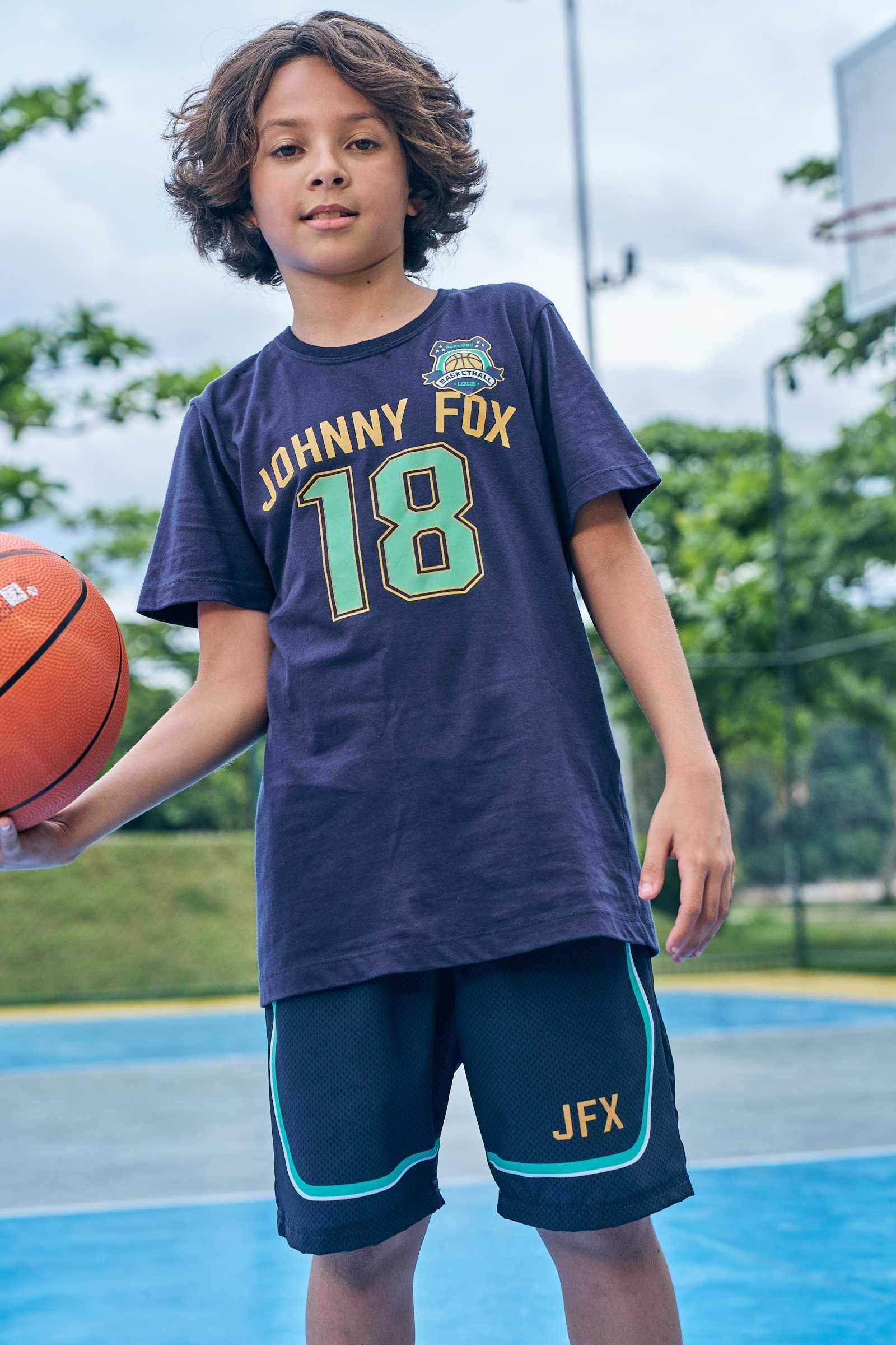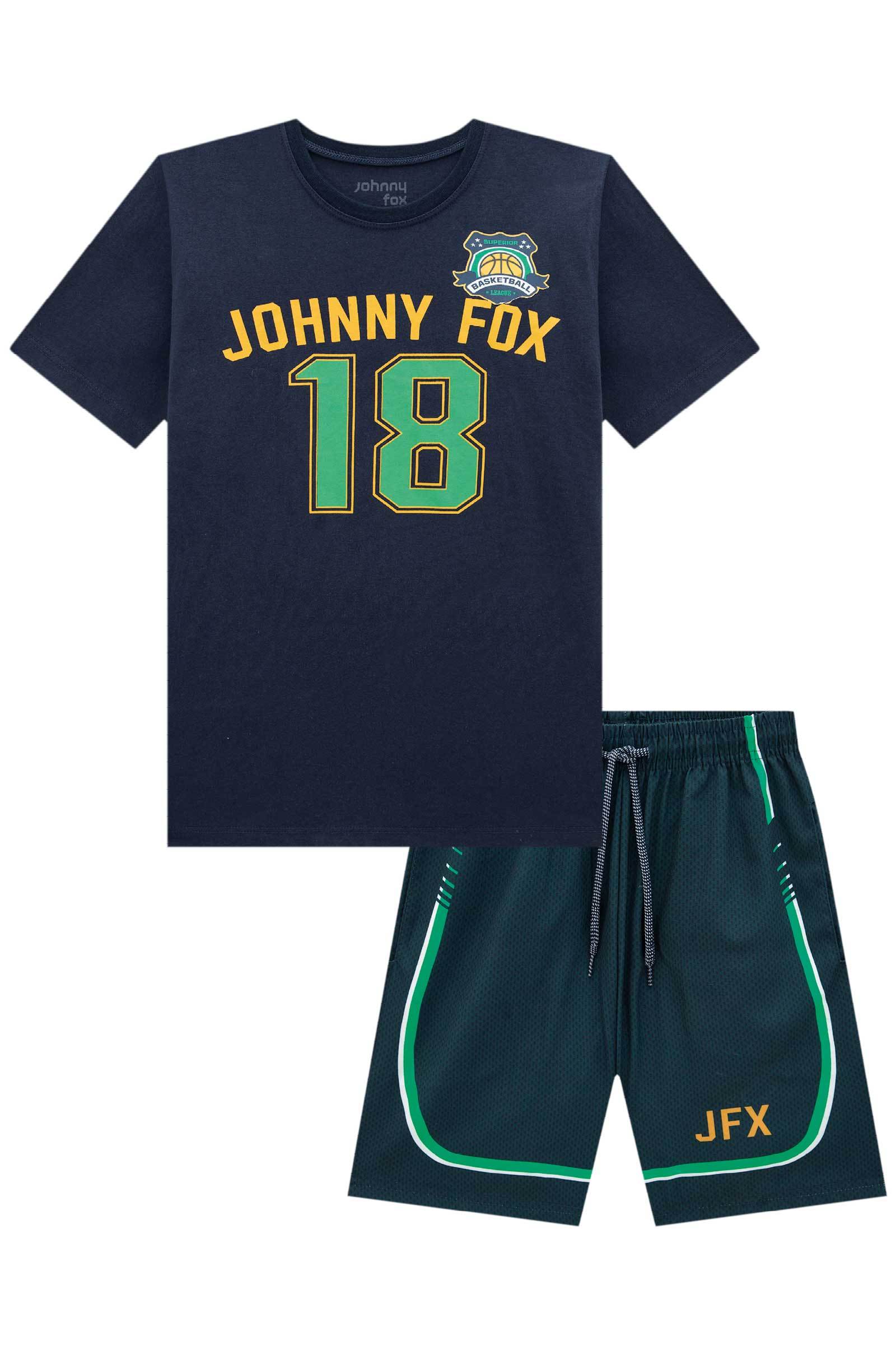 Conjunto de Camiseta em Meia Malha e Bermuda em Nylon Ergonomic 85684 Johnny Fox Teen Menino