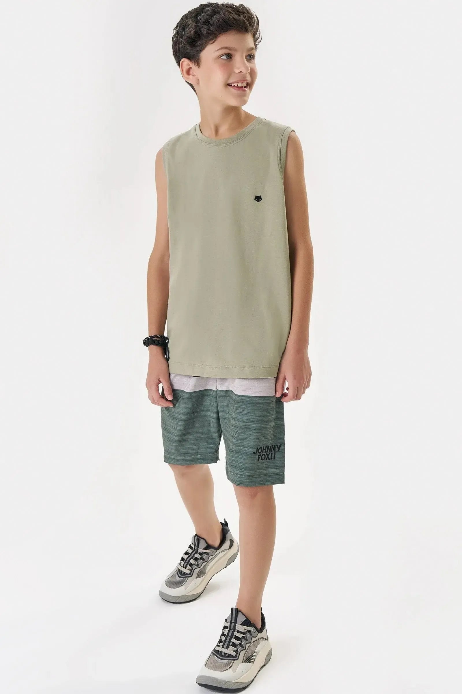 Conjunto de Regata em Meia Malha e Bermuda em Nylon Ergonomic com Elastano 88281 Johnny Fox Teen Menino