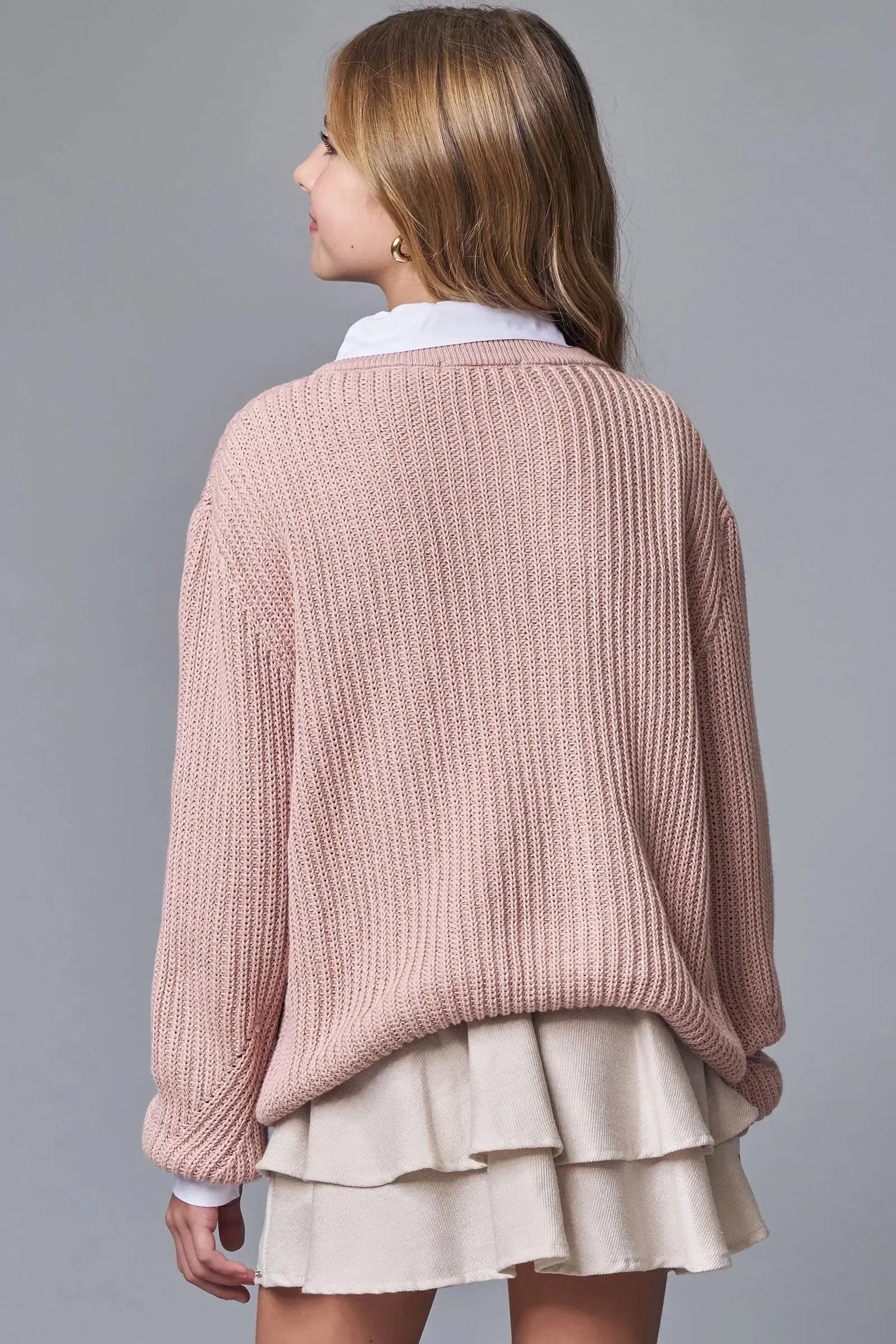 O blusão em tricô 100% algodão, é a escolha perfeita para as meninas que amam um look cheio de conforto, sem abrir mão do estilo no dia à dia! Disponível em uma cor super estilosa - nude - ela é uma peça essencial, perfeita para montar diversos looks e deixar o inverno das pequenas ainda mais estiloso!