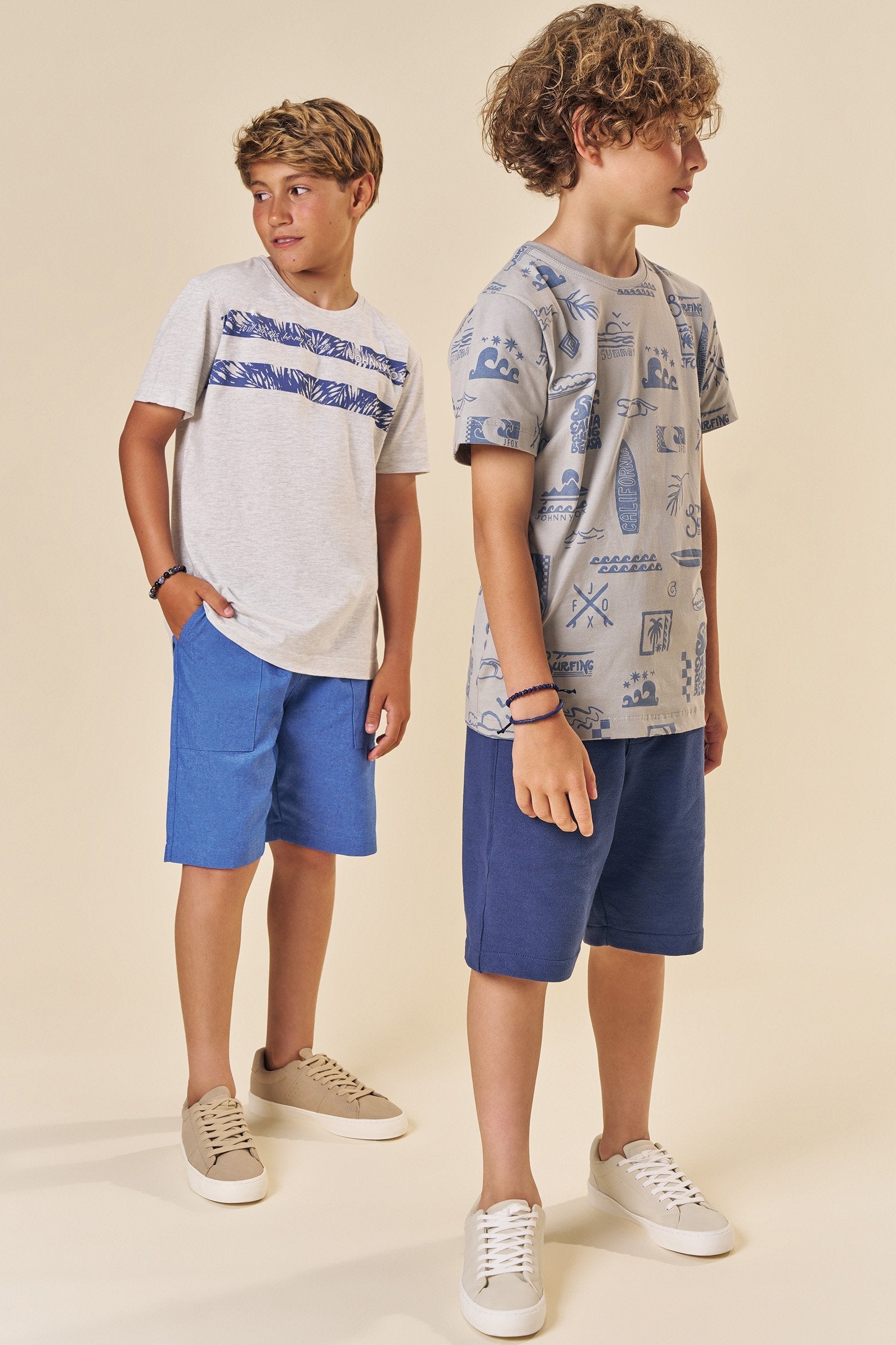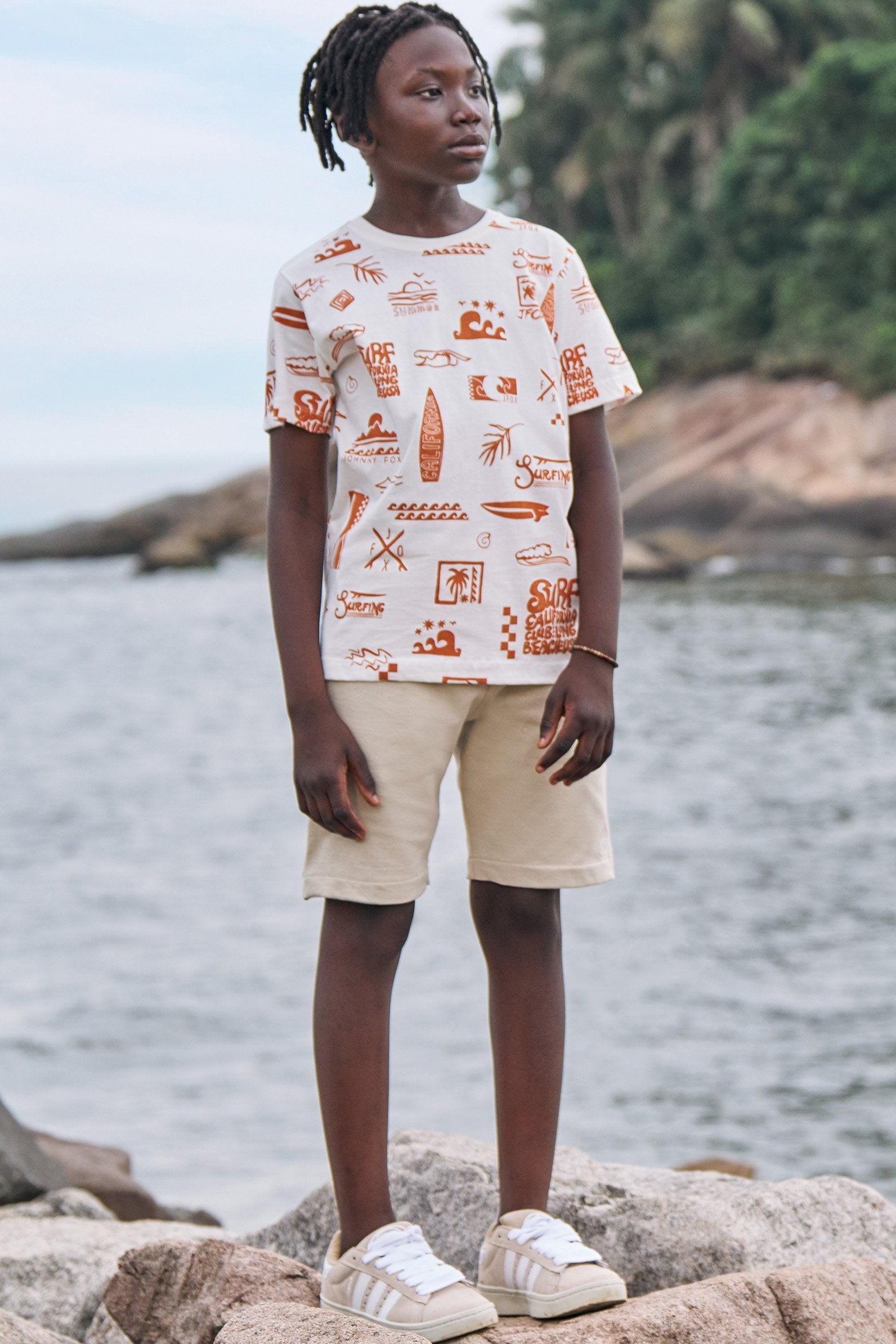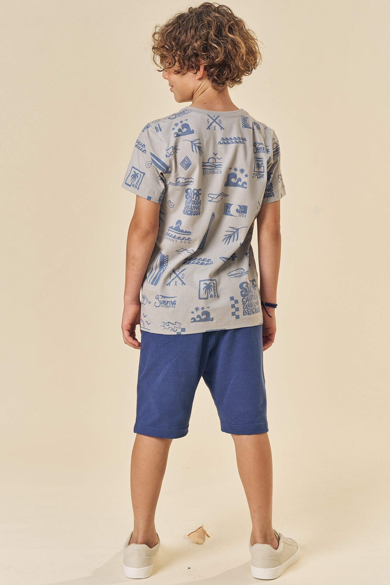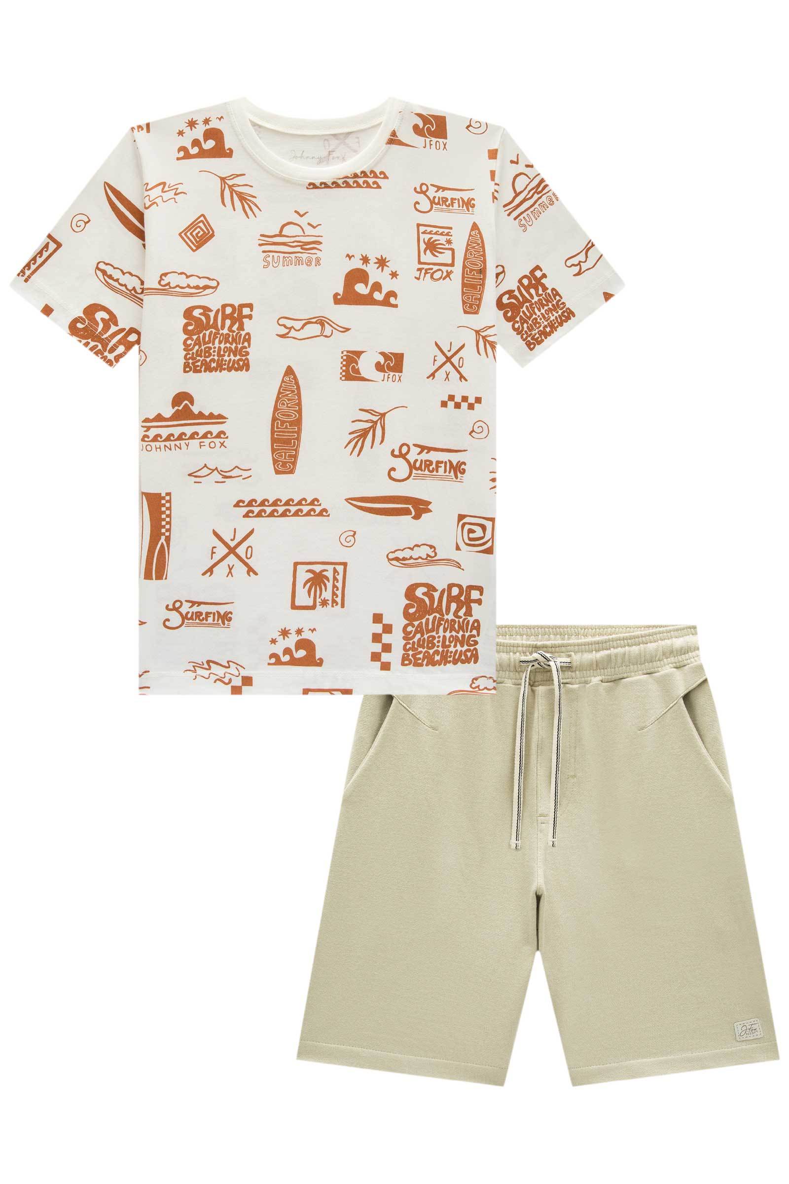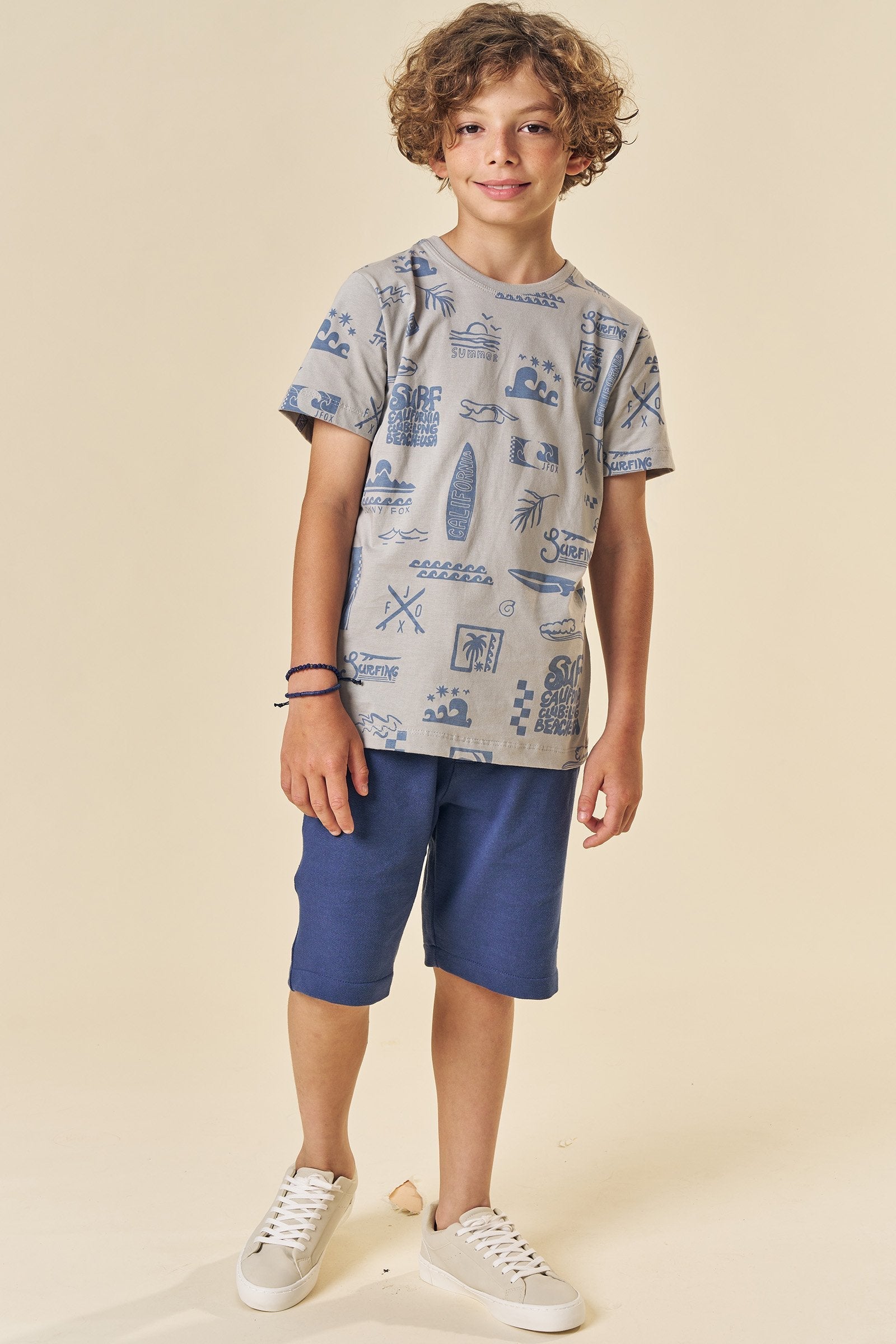 O conjunto de camiseta em meia malha com bermuda em moletwill com elastano é a escolha perfeita para o dia a dia dos meninos, oferecendo uma combinação ideal de conforto, estilo e praticidade. Disponível em duas cores super estilosas - bege e azul - é perfeito para passeios, brincadeiras e momentos de lazer, este conjunto se destaca pela qualidade dos materiais e pelo design casual. A estampa divertida adiciona um charme especial à peça.
