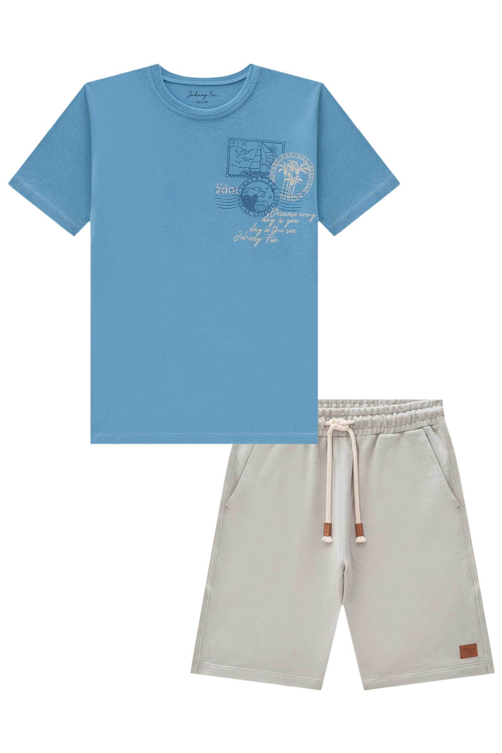 O conjunto de camiseta em meia malha e bermuda em moletom sem pelúcia é a escolha perfeita para o dia a dia dos meninos, oferecendo uma combinação ideal de conforto, estilo e praticidade. Disponível em duas cores super estilosas - bege e azul - é perfeito para passeios, brincadeiras e momentos de lazer, este conjunto se destaca pela qualidade dos materiais e pelo design casual. A estampa divertida adiciona um charme especial à peça.
