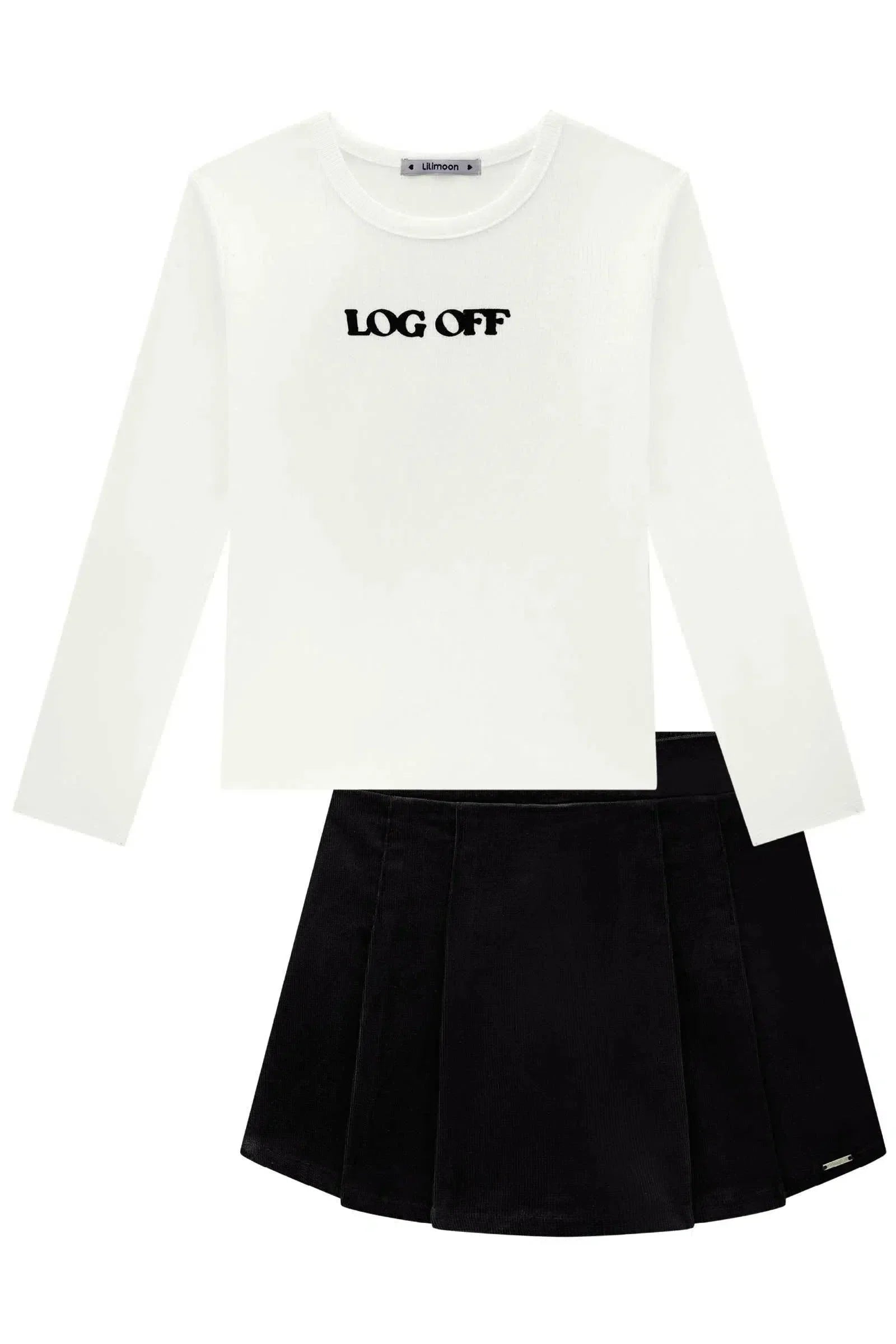 Conjunto de Blusa em Canelado e Short Saia em Veludo 82801 Lilimoon Teen Menina