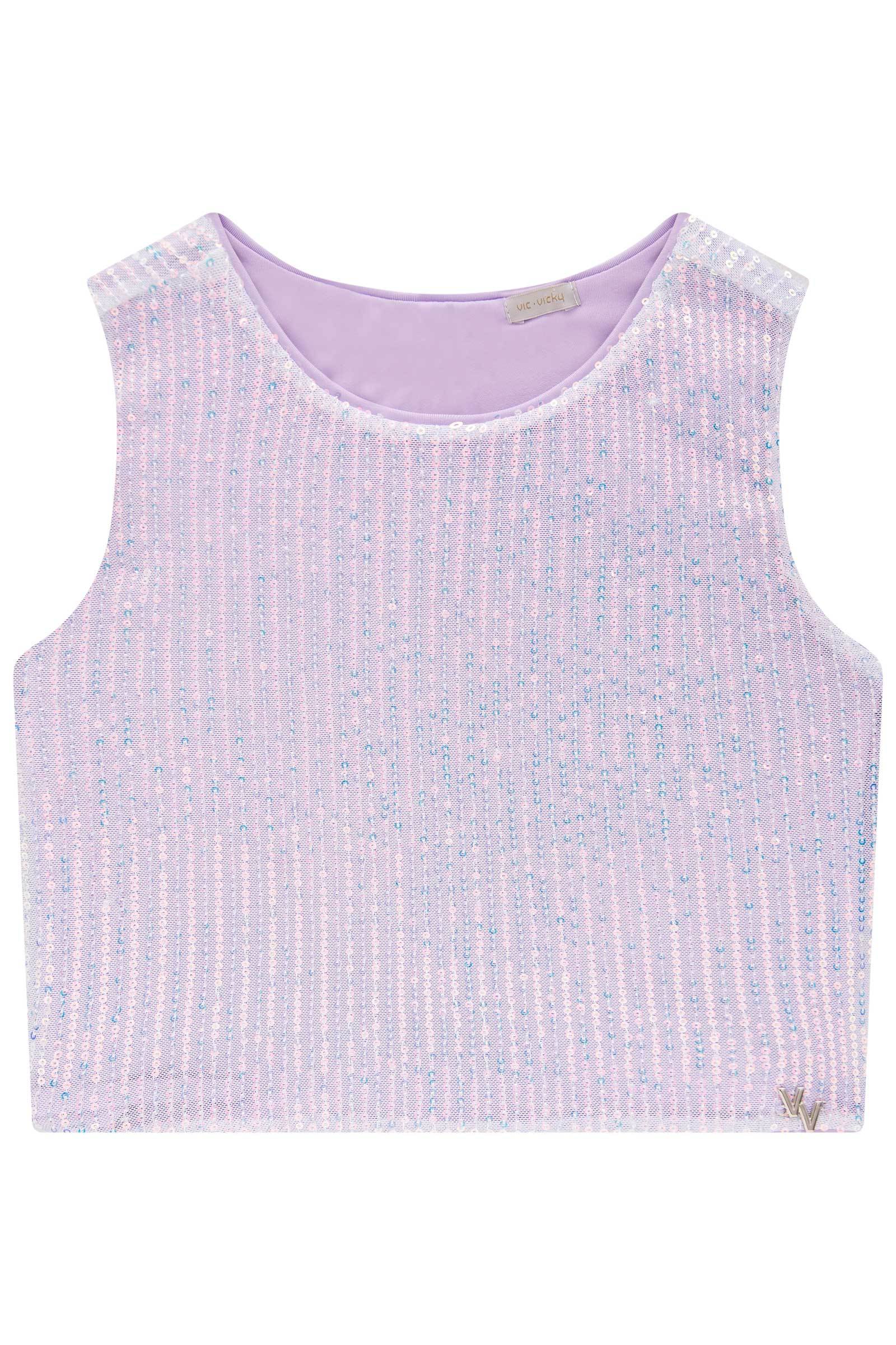 A blusa cropped em paetê é a peça perfeita para as garotas que amam um visual descolado e confortável, com uma modelagem moderna e muito brilho. Disponível em três cores super estilosas - dourado, lilás e preto - ela é ideal para compor looks cheios de personalidade.