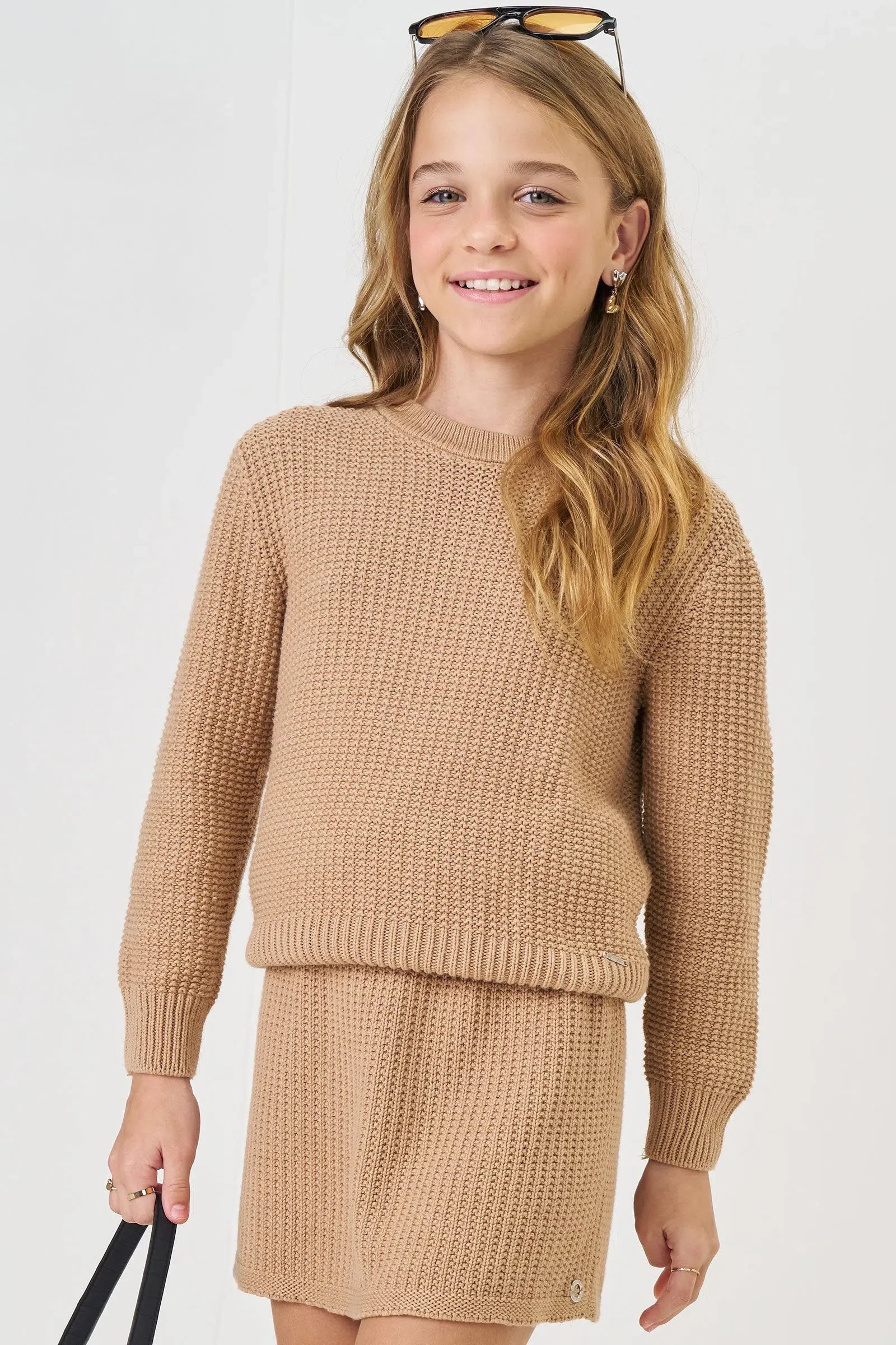 Com a mini saia em tricô 100% algodão, as adolescentes podem se sentir confortáveis e estilosas em qualquer ocasião.