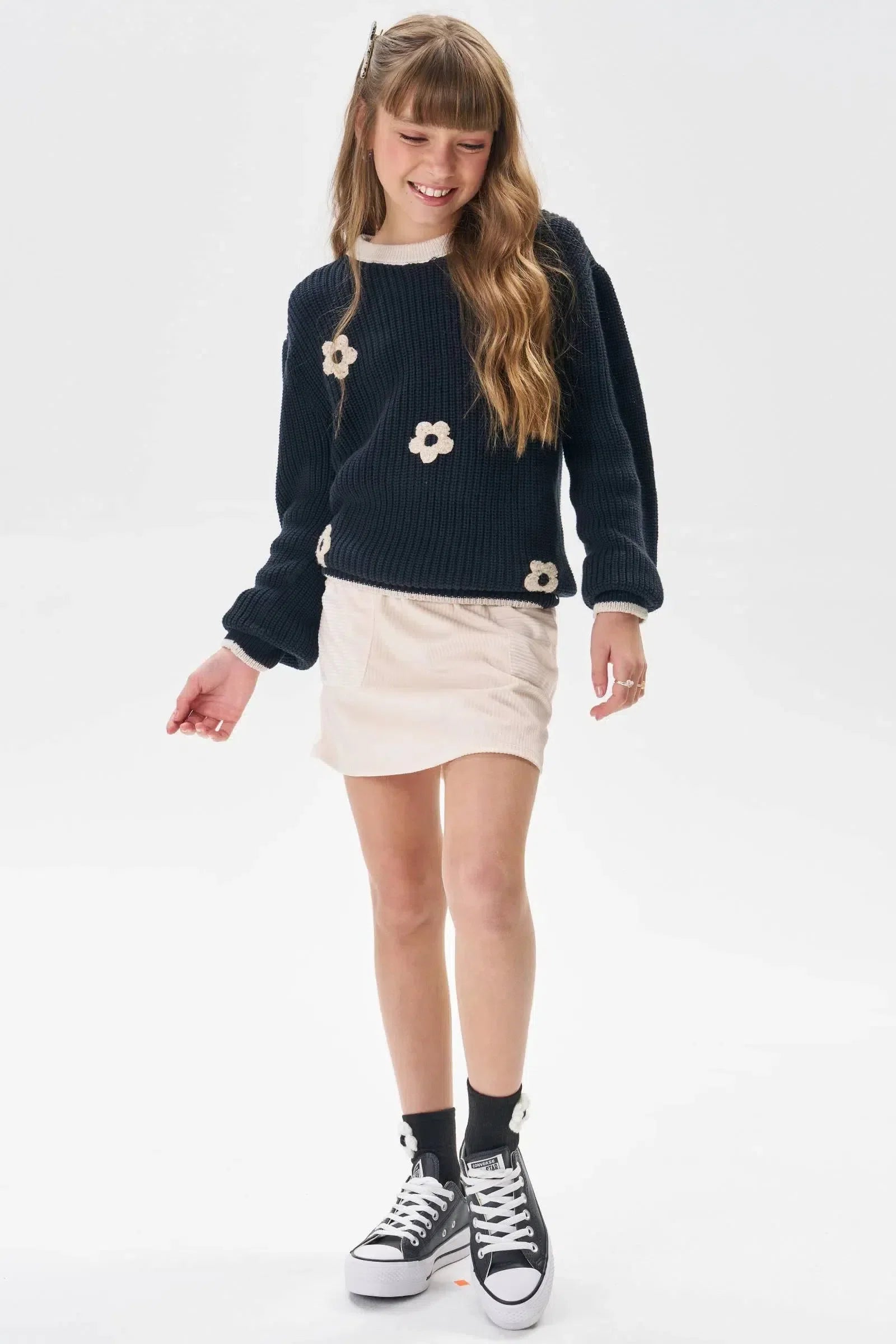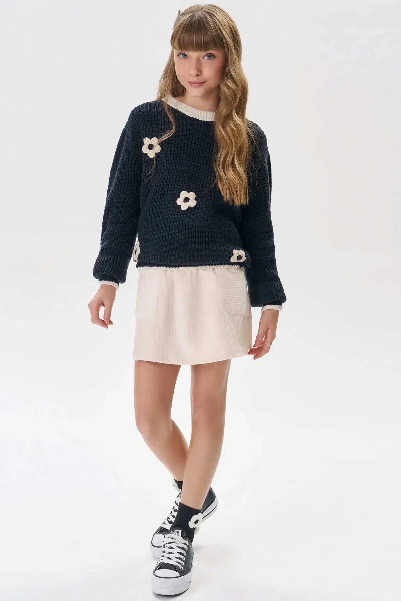A Saia em Malha Veludo Cotelê Vic.Vicky Girl é a escolha perfeita para as adolescentes que buscam conforto e estilo no dia a dia. Confeccionada em malha de veludo cotelê, um tecido macio e quentinho, essa saia é perfeita para diversas ocasiões, combinando praticidade e moda. O veludo cotelê proporciona um toque macio e confortável, ideal para os dias mais frios. A textura do veludo cotelê confere um visual moderno e sofisticado.