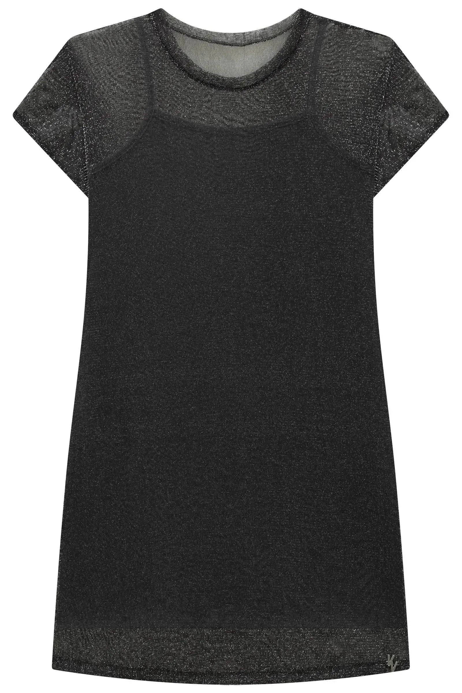 O vestido sobreposição em tule brilho e forro em cotton, é uma peça cheia de charme, perfeito para as meninas que amam um look cheio de estilo e personalidade! Disponível em uma cor super estilosa - preto - ele oferece um toque super macio e confortável, ideal para diversas ocasiões.