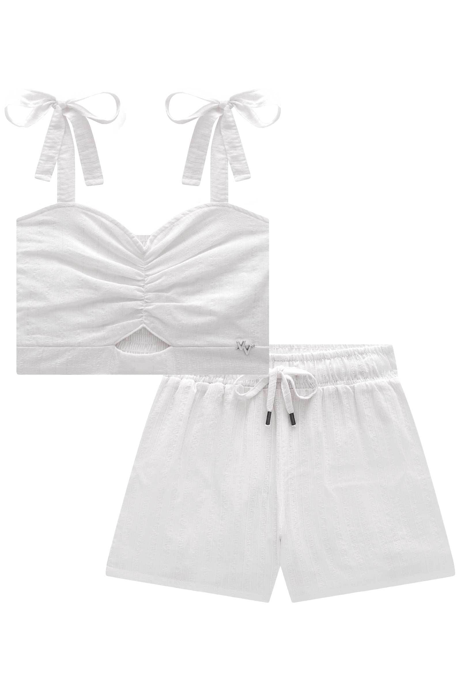 Conjunto de Blusa Cropped e Shorts em Tricoline Maquinetada 83895 Vic&Vicky Teen Menina