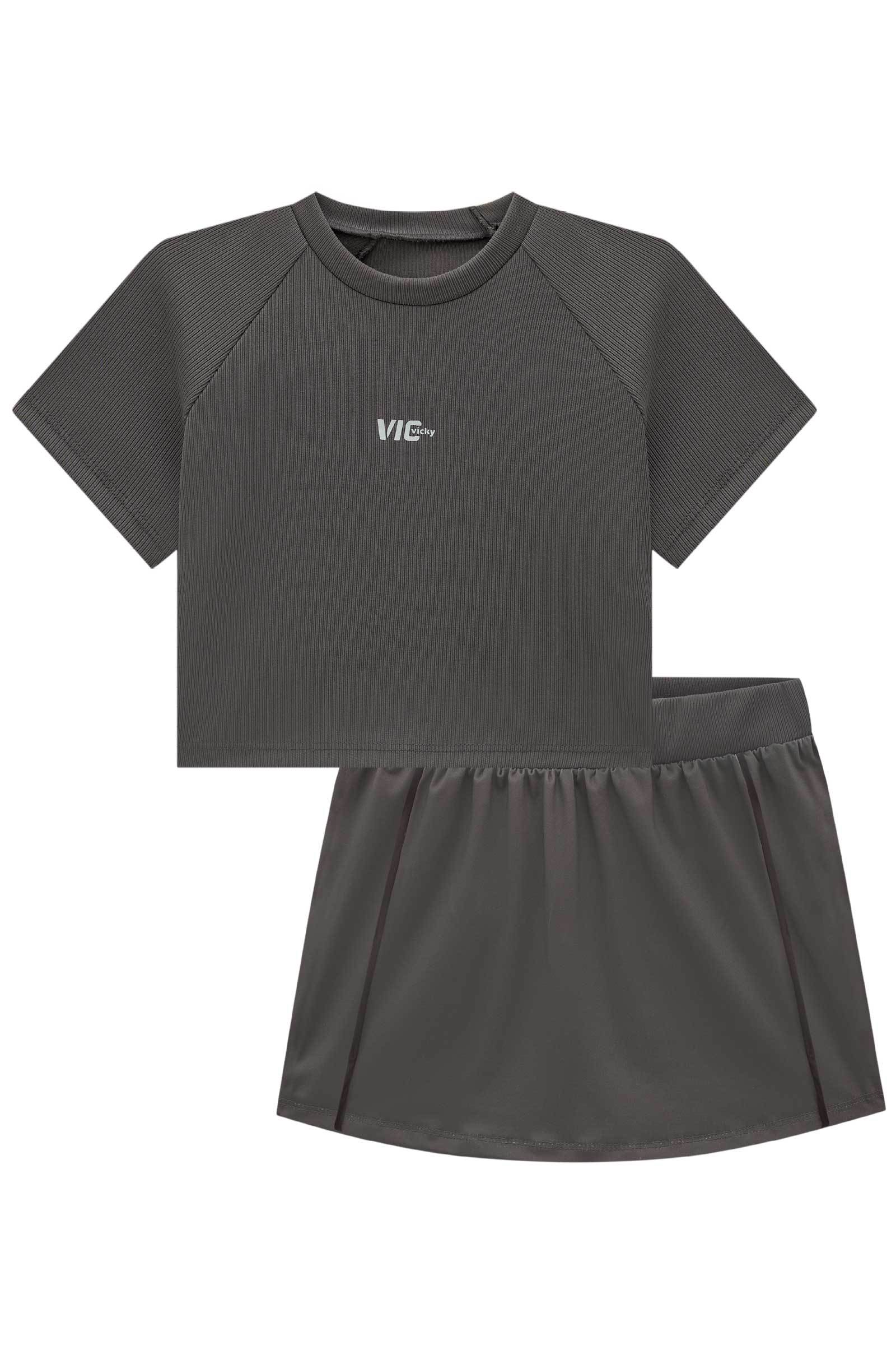 O conjunto de blusa cropped em ribana fancy e short saia em malha UV 50+ é a combinação perfeita de conforto, praticidade e muito estilo. Disponível em duas cores super estilosas - verde e cinza - este conjunto versátil é ideal para as meninas que buscam um visual moderno e despojado sem abrir mão do bem-estar. A etiqueta termocolada, adiciona um charme especial à peça.